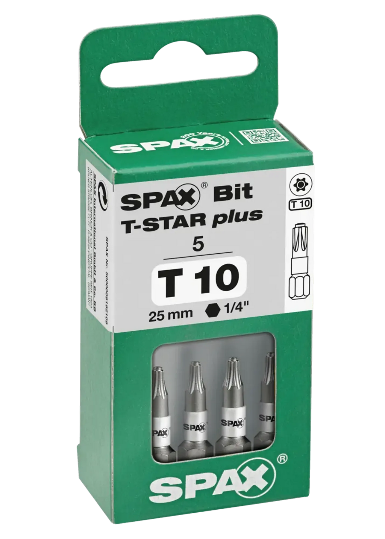 Med SPAX T-STAR plus-bits får du bättre kraftöverföring genom perfekt passform, längre livslängd och snabbare gängning. Bitsens rena passform innebär också bättre vägledning, till exempel vid skruvning över huvudhöjd.