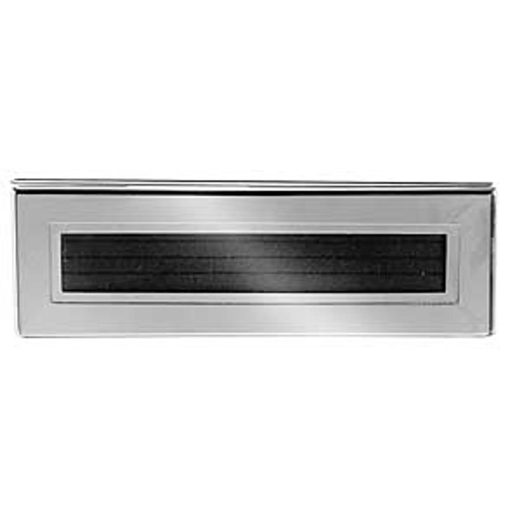 Brevinkast av mässing med svart pannå för märkning. EU-standard 137724 rekommenderar ett öppningsmotstånd på max 8 N och brevinkast 12 har ett öppningsmotstånd på max 6-7,5 N.