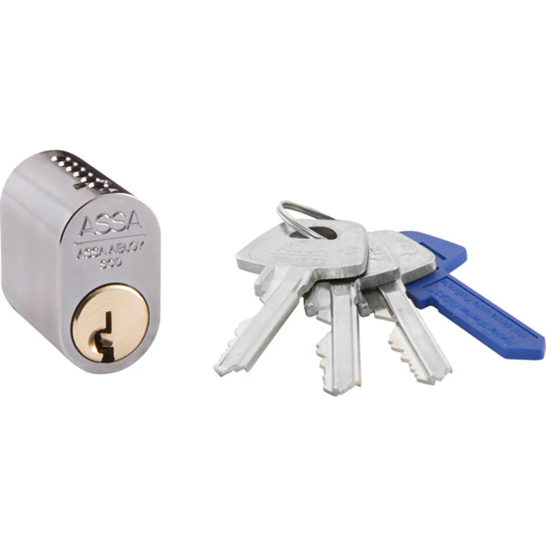 Oval utvändig stiftcylinder med 6 spärrelement som kan kombineras med ASSAs hänglåssortiment. Uppfyller krav enligt SS 3522 klass 3 och EN 1303 grade 6, grade 2. Cylindern ingår i av försäkringsbolag godkänd låsenhet.