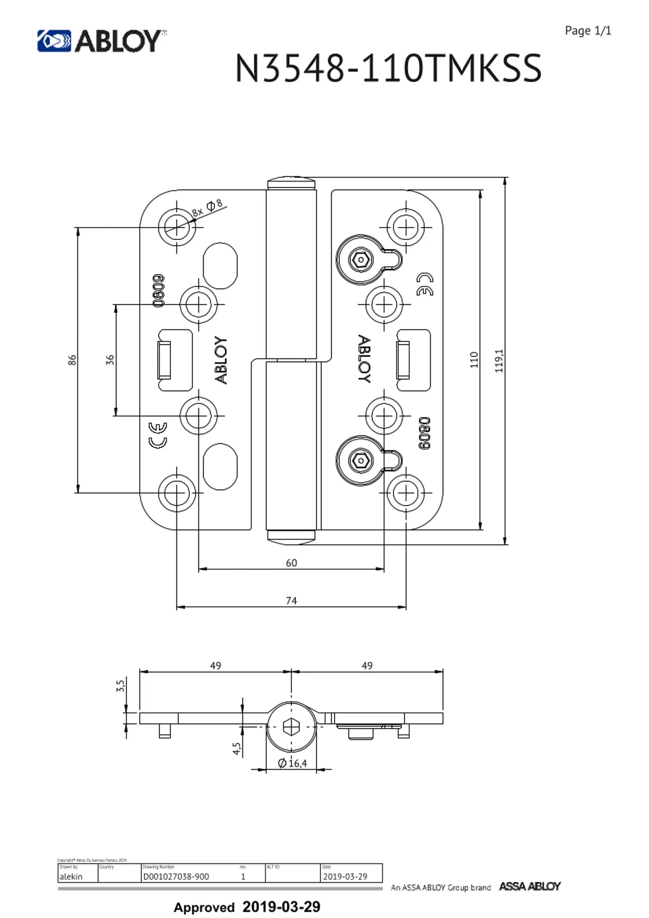 Gängjärn TMKSS N3548 klarlackat är ett tappbärande gångjärn för ofalsade dörrar.