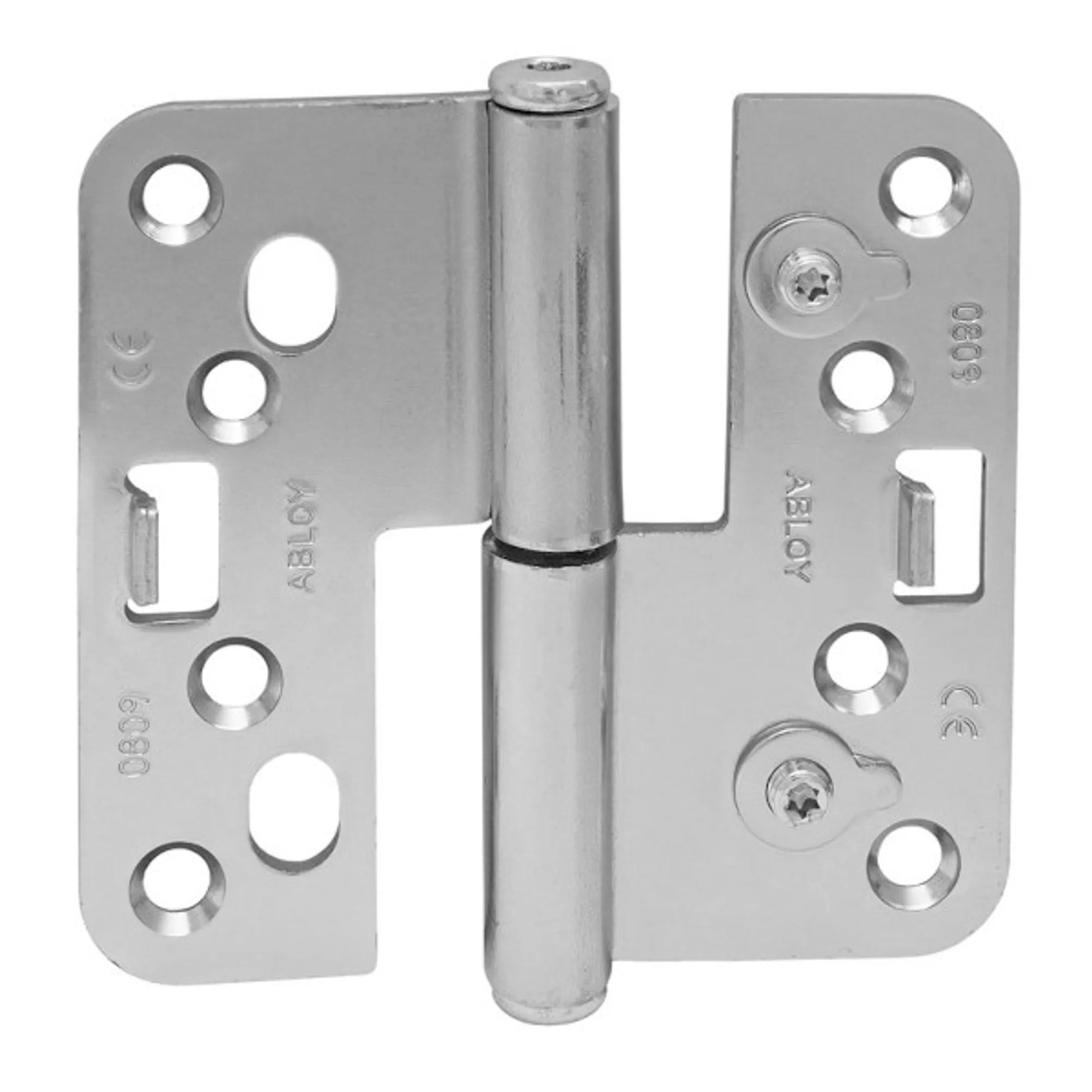 Tappbärande gångjärn för ofalsade dörrar. Härdade ståltappar och med fast bakkantssäkring. Steglös höjd- och sidojustering.