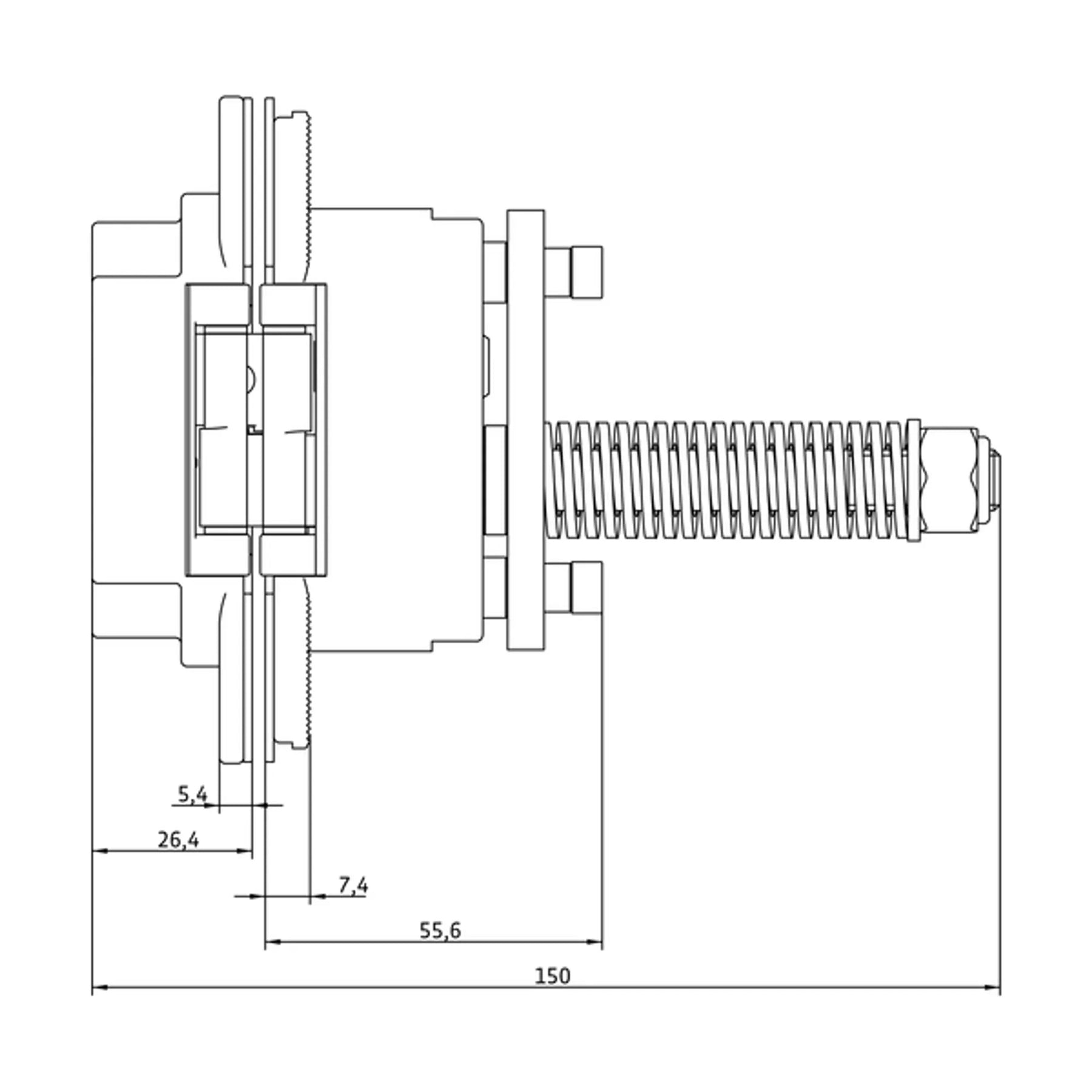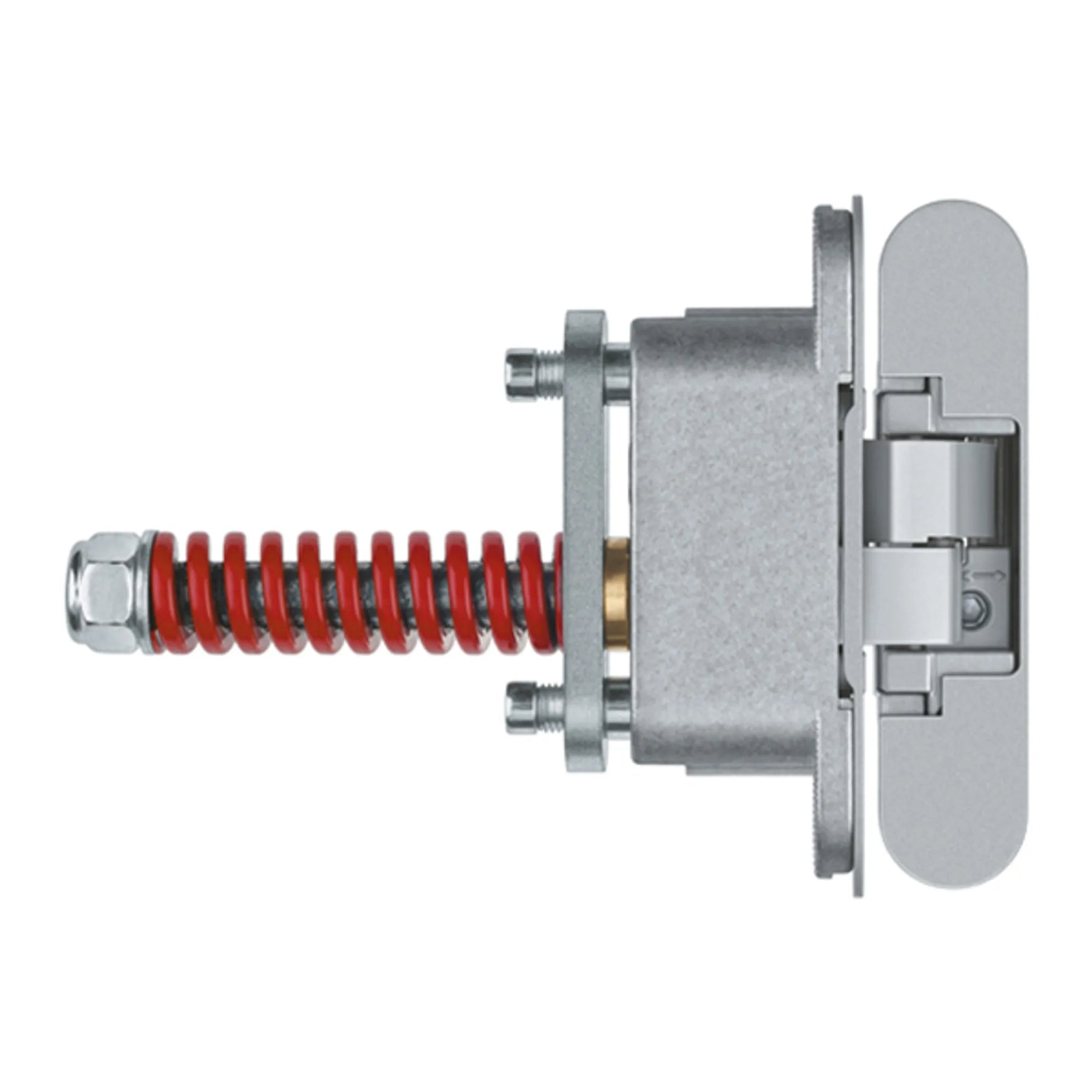 Infällt, dold dörrstängare i stål och zamak för dörrar upp till 60 kg. Ställbar stängningskraft.