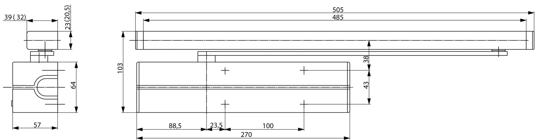 - Mått: Höjd 64 mm, djup 57 mm, längd 270 mm