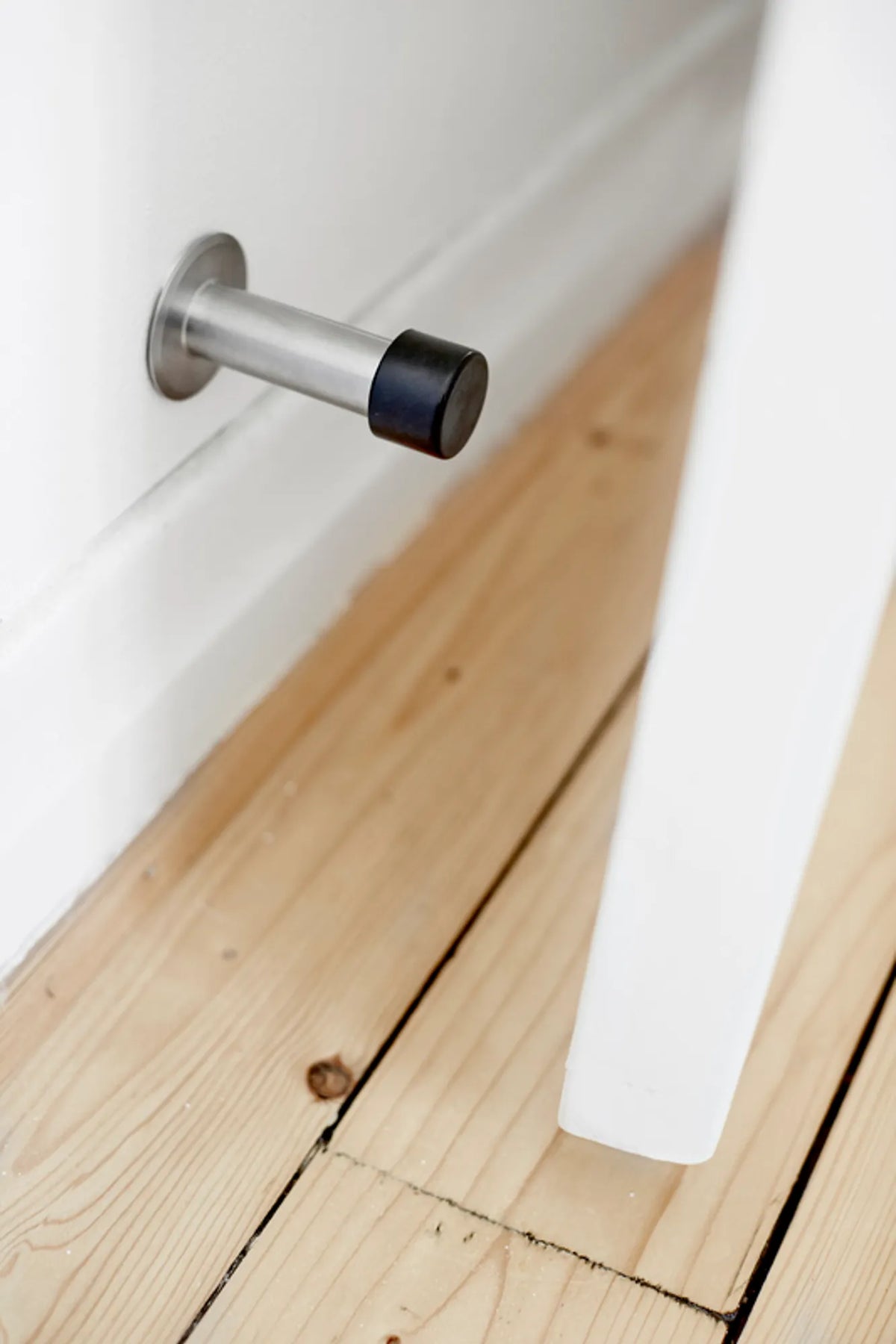 Dörrstopp 2893 av rostfritt stål för dold fastsättning med skruvstift.