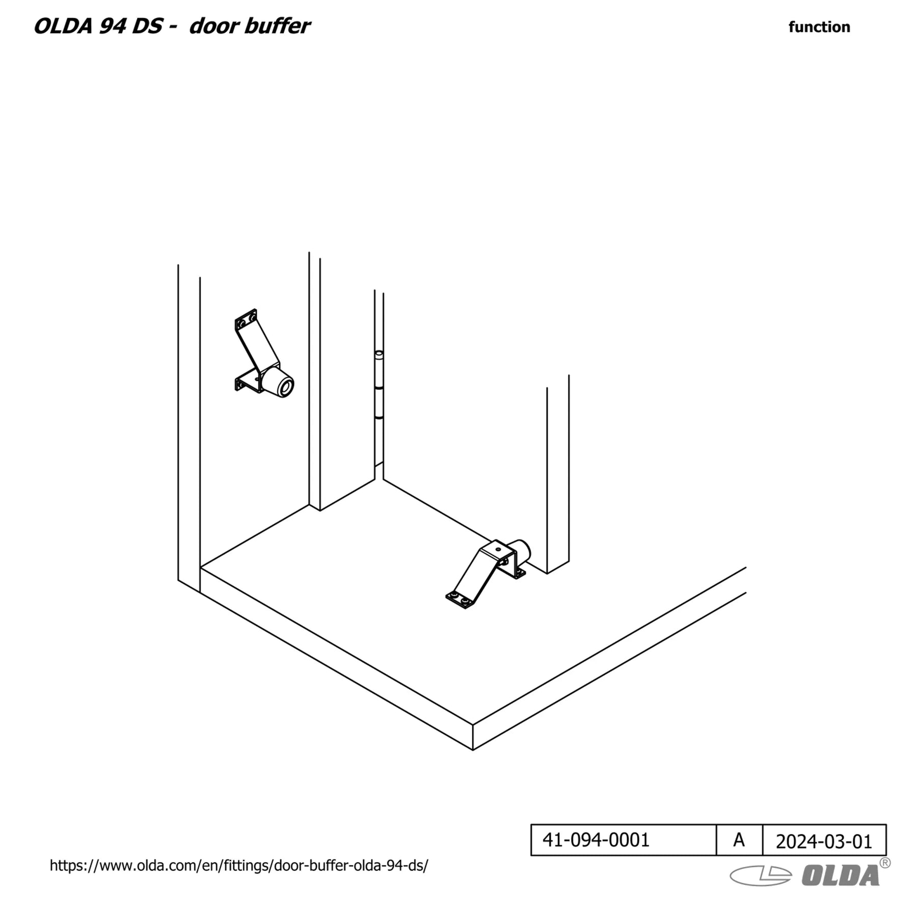 Dörrstopp 94 DS från Olda med flexibelt montage, antingen på golv eller vägg, kan användas både för slag- och skjutdörrar.