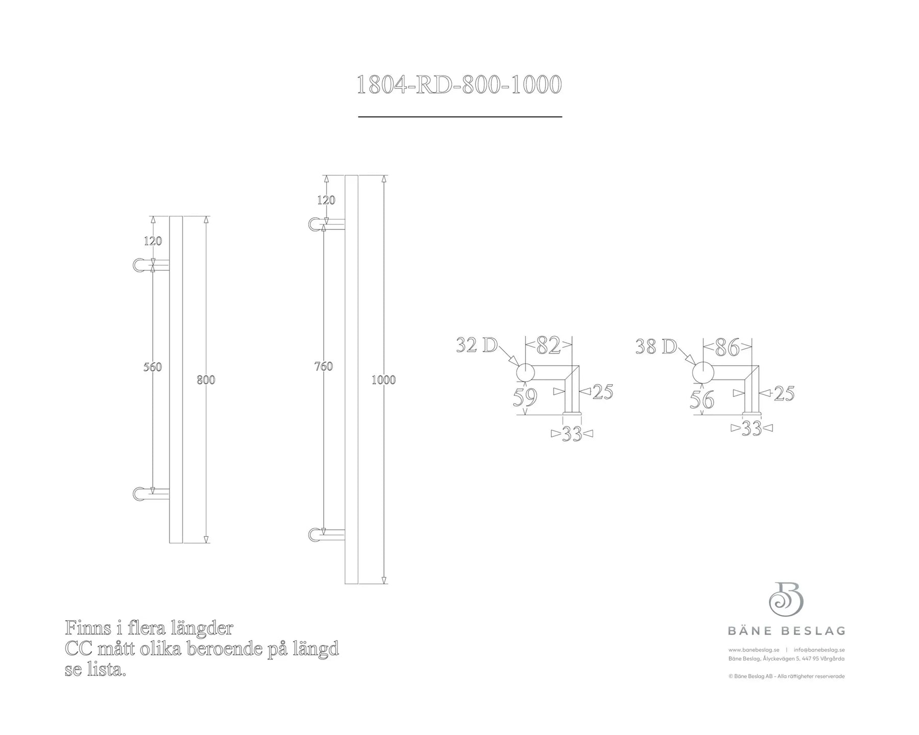 Denna modellen kan måttbeställas och flertalet längder finns tillgängliga att välja bland standard. Vänligen se måtttabellen.