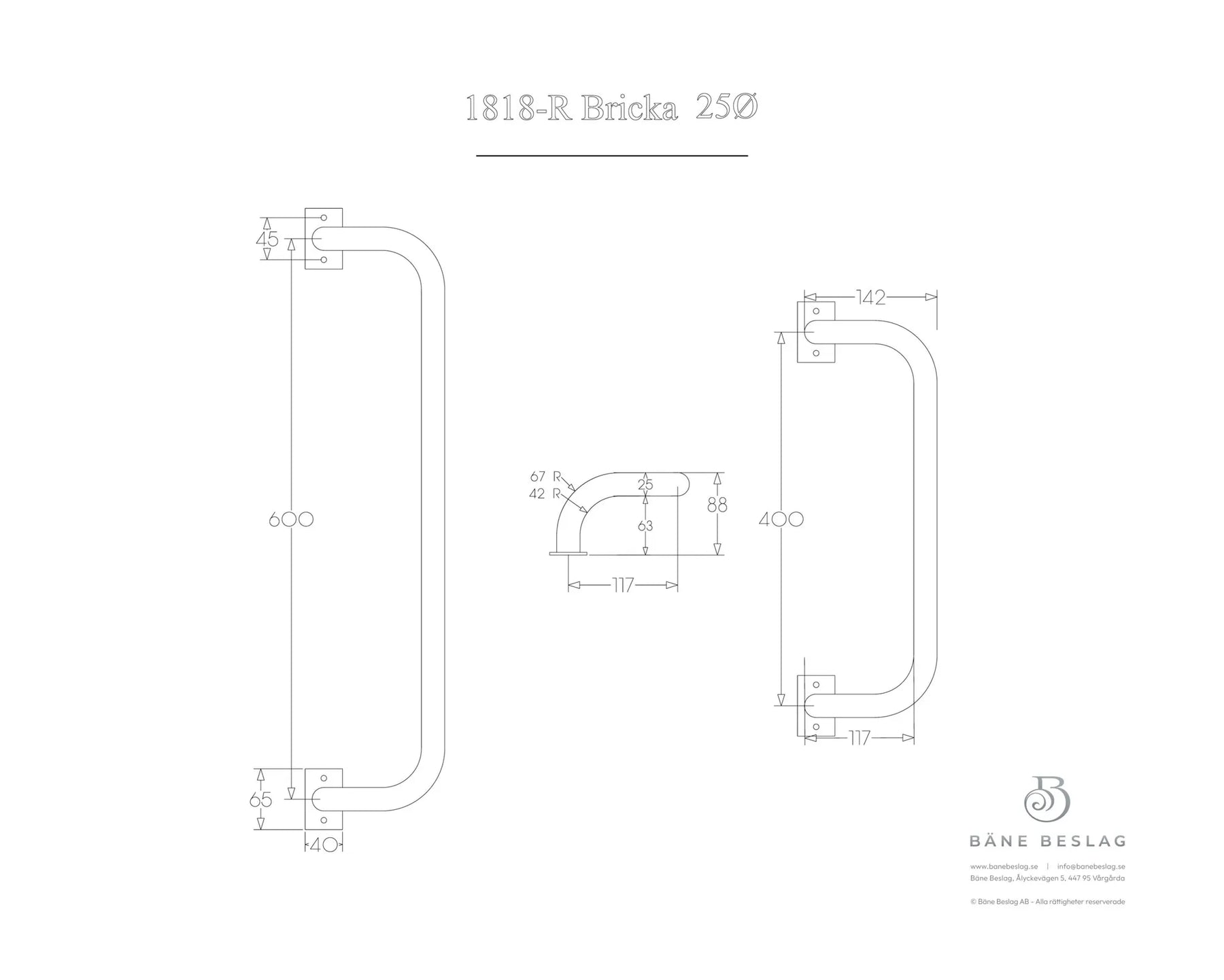 Ett klassiskt tidlöst draghandtag av rostfritt stål för entrédörrar i olika miljöer och material. Det sätts oftast som par och fungerar lika bra som draghantag som tryckhandtag. Modellen går även att få med trägrepp i mitten.
