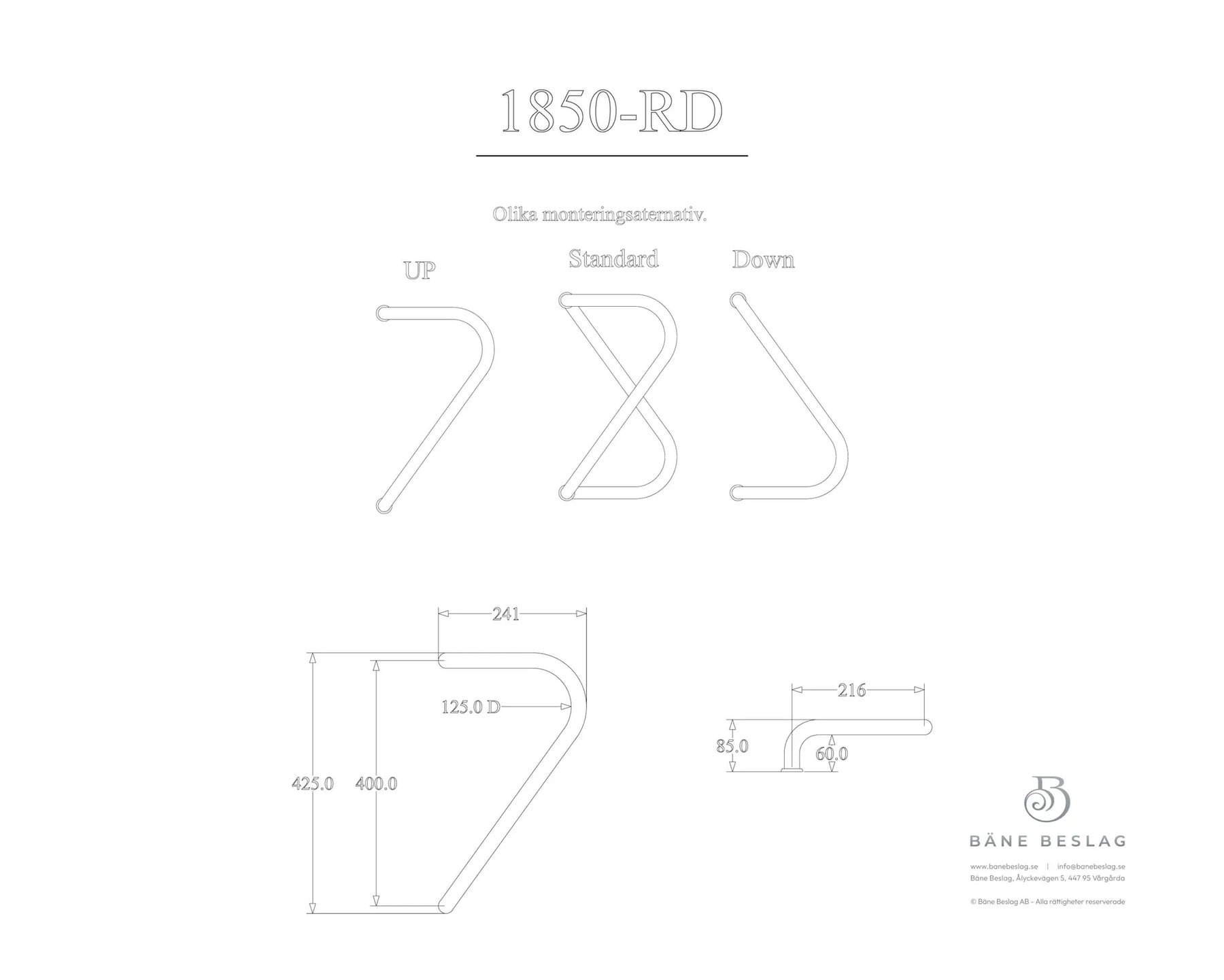 Draghandtag 1850 eller Malmö handtaget är ett av Bänes premiumhandtag helt i rostfritt stål. Med en vacker och unik form är detta ett tilltalande och stabilt handtag som utstrålar elegans och hållbarhet i dess stilrenhet. Utseendet förstärks av den polerade metallfinishen som håller sig blank över tid. Modellen fungerar lika bra som draghandtag och tryckhandtag.
