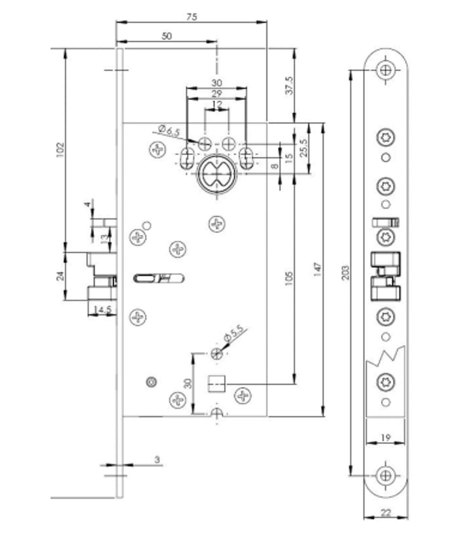 - Låset är anpassat för montage tillsammans med dörrautomatik.