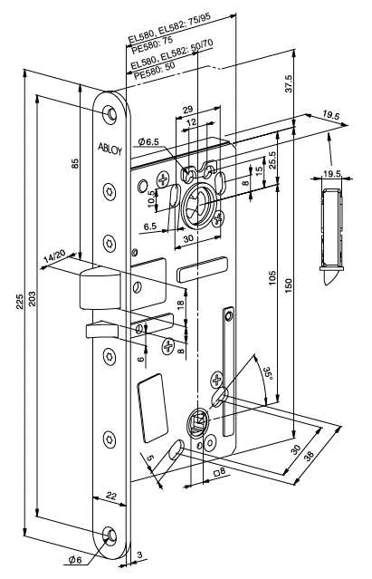 INTE ihop med dörrautomatik men är däremot lämpligt att använda i utrymningsdörrar eftersom insideshandtaget/panikutrymningsbehöret alltid är inkopplat. Regeln på låset skjuts alltid ut när dörren är stängd. Låset kan styras elektriskt från t.ex. ett passersystem, eller från en öppnaknapp eller en timer.