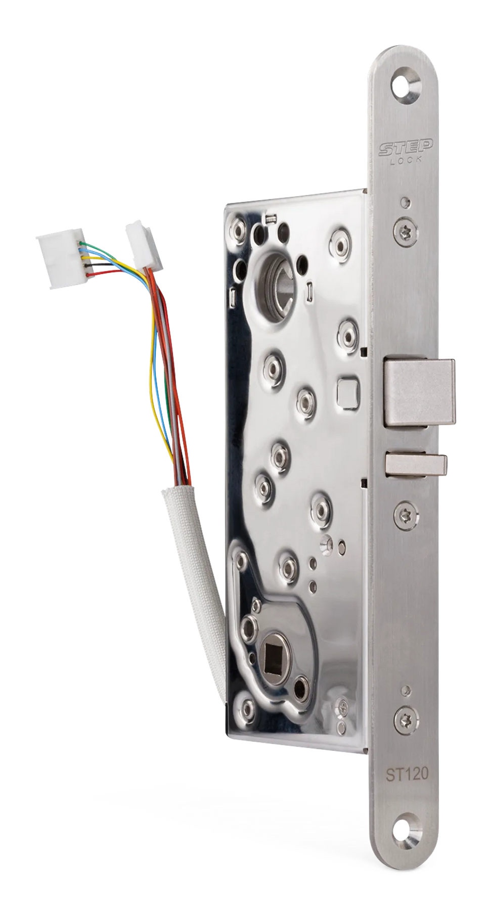 Låset kan användas i dörrmiljöer med både brand- och utrymningskrav samt är anpassat för att kunna användas tillsammans med elslutbleck. STEP 120 är det självklara valet vid ROT- och utbytesprojekt.