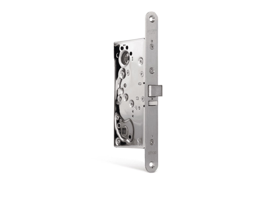 STEP 130 är ett kraftfullt och driftsäkert eltryckeslås utvecklat för dörrar med höga krav på tillgänglighet, brandsäkerhet, utrymning och dörrautomatik. Det bygger på samma teknik som STEP 110 men har ett Automatikfall® som gör att dörren kan öppnas elektriskt med dörrautomatik utan att förlora sin låsfunktion.