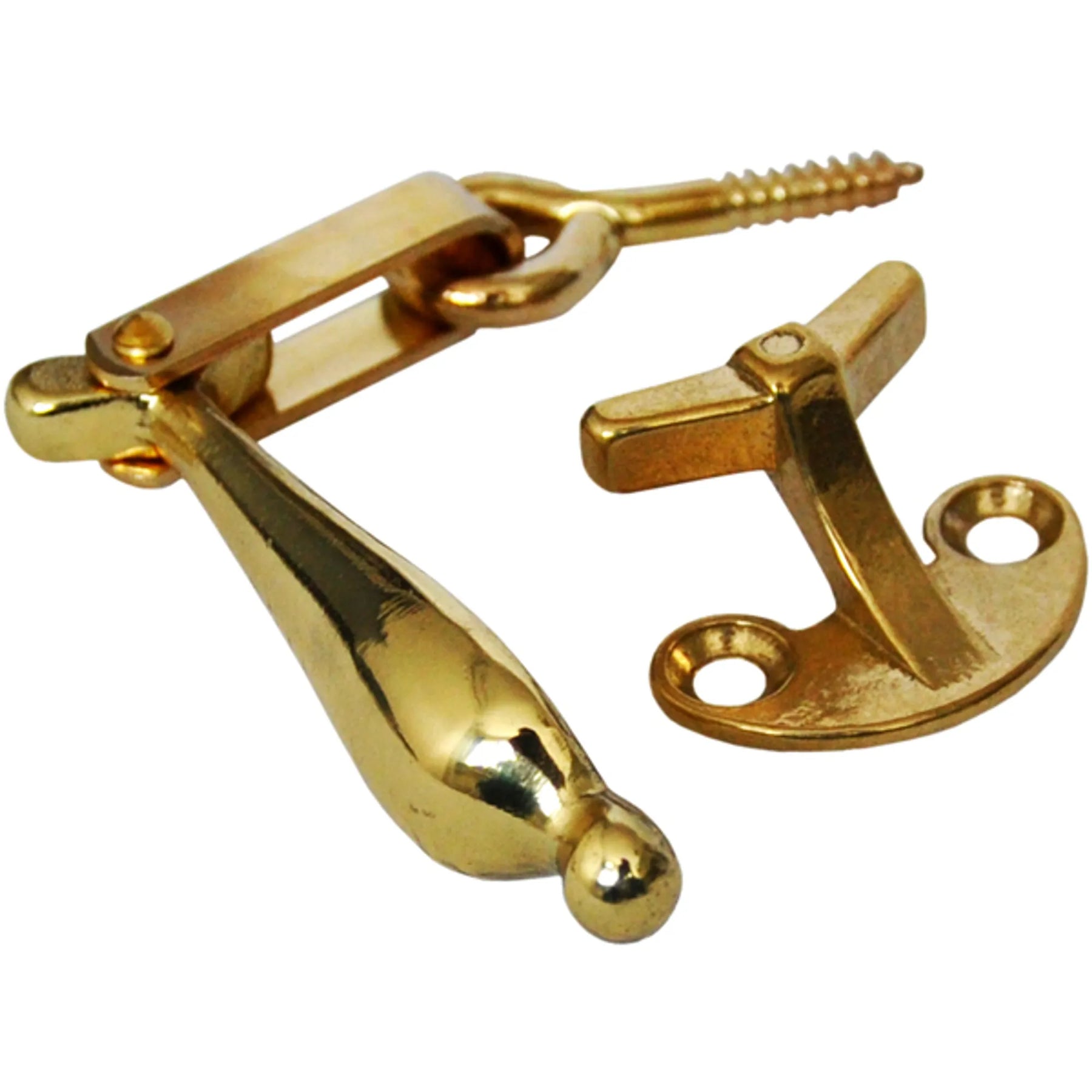Fönsterlås av mässing för utåtgående fönster. Bygel 29 mm, 16 mm hake.