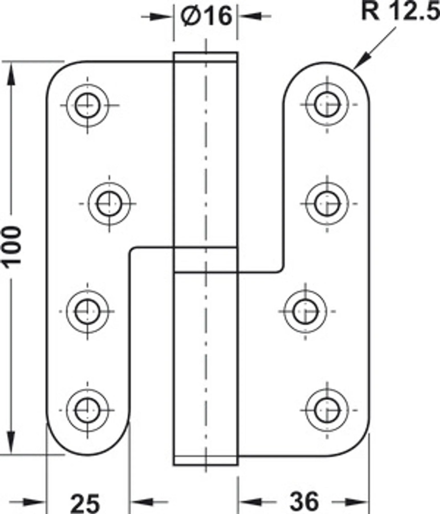 Gångjärn 100 mm MP hö m skruv