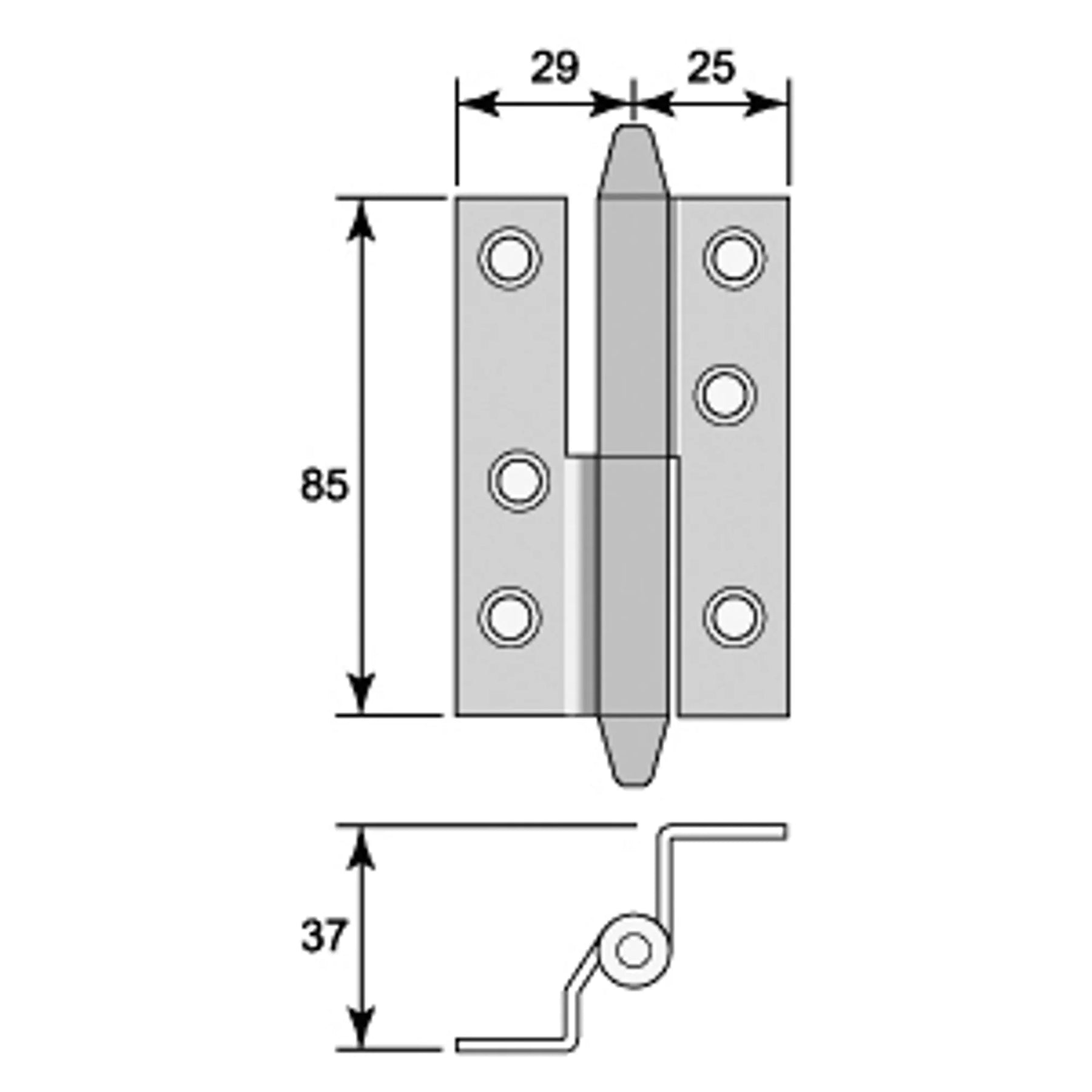 För överfalsade fönster. Förebild Aug Stenman nr 223. Kan ersätta insticksgångjärn 5114 i de fall insticksgångjärn ej föredras.