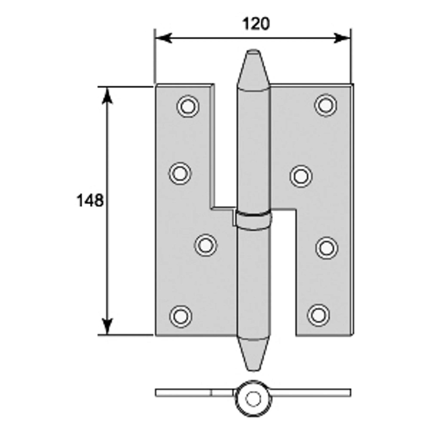 Gångjärn med kullager för ofalsade tunga portar. Finns i standard, L- EL- och FL-variant. Förebild Aug Stenman n:o K224. Variant E, förebild Jernbolaget n:o 586.