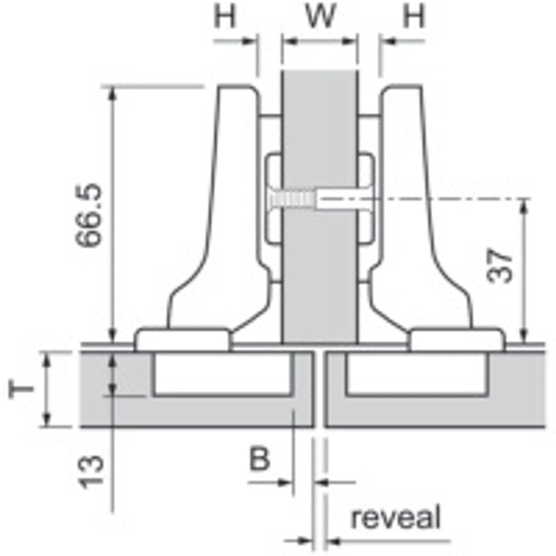 CLIP top BLUMOTION gångjärn med öppningsvinkel 110° för halvtäckande lucka, skruvmontering med stängningsautomatik.