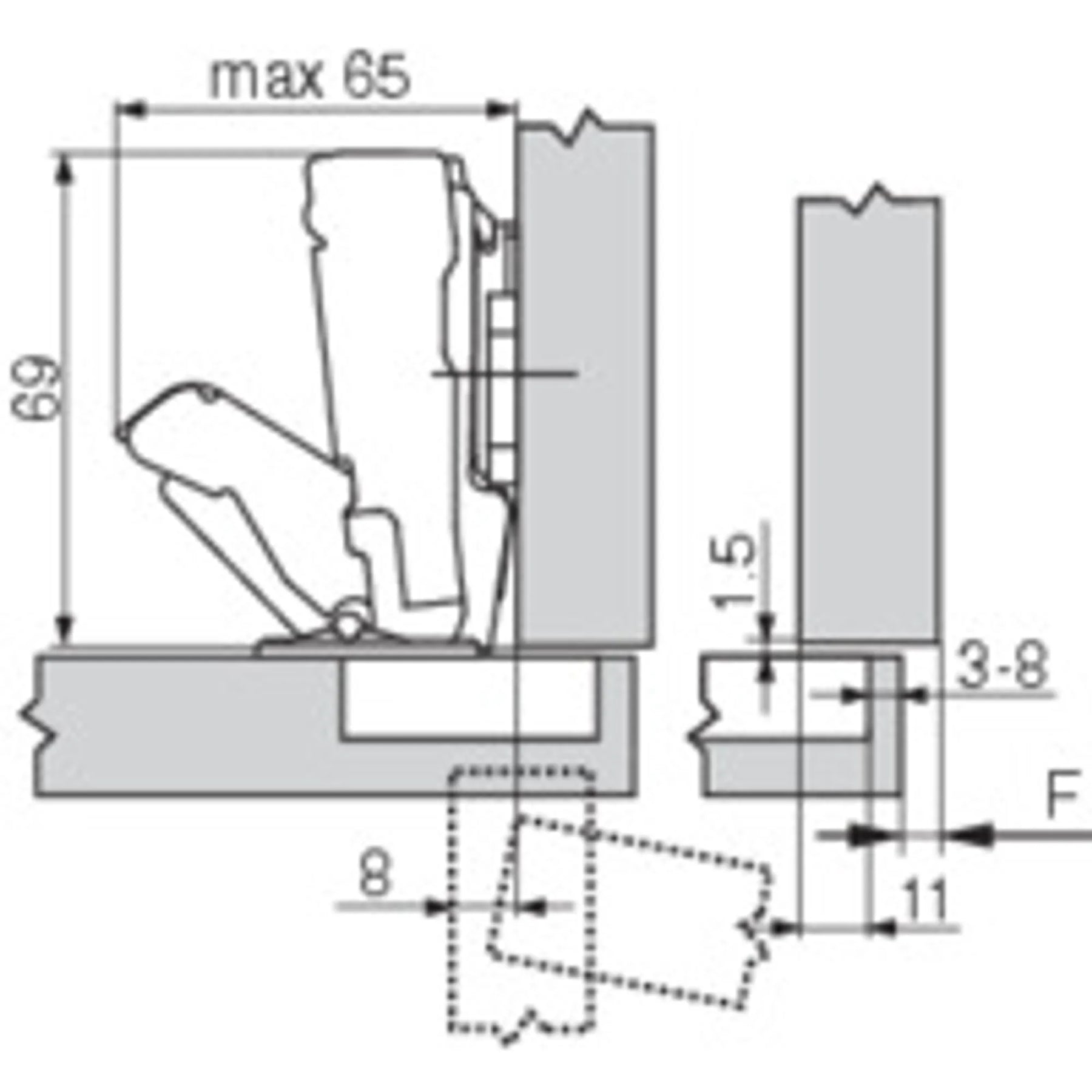 Justering i sid-, djup- och höjdled (med motsvarande monteringsplatta).