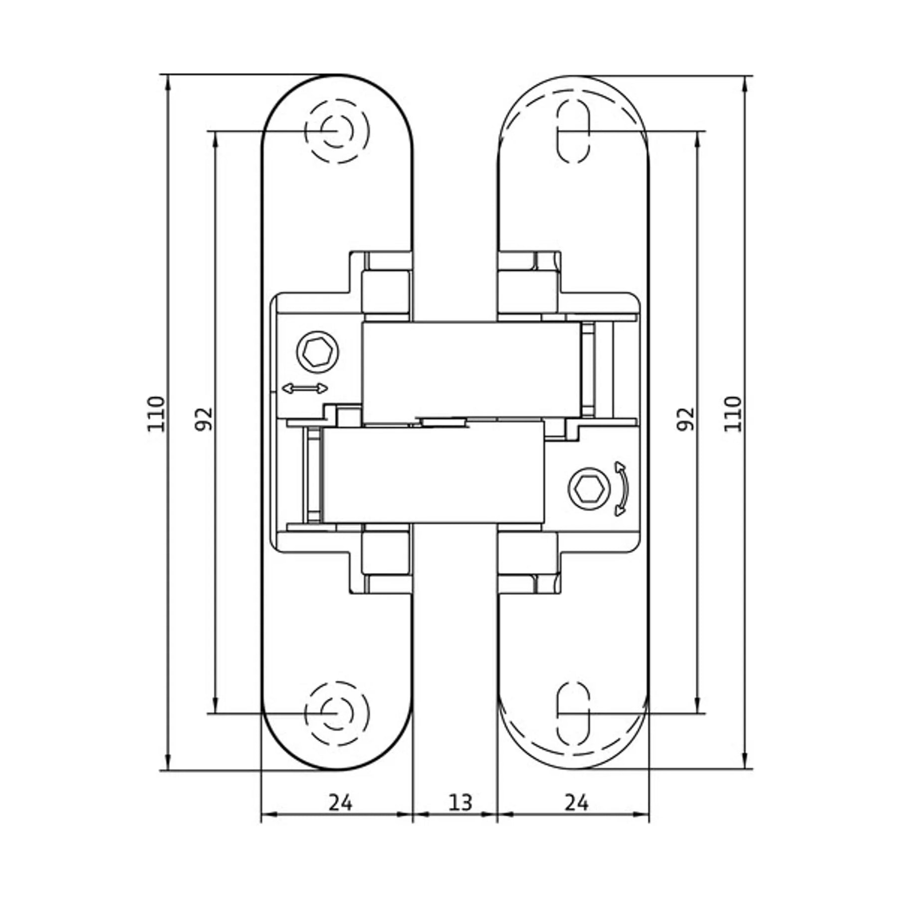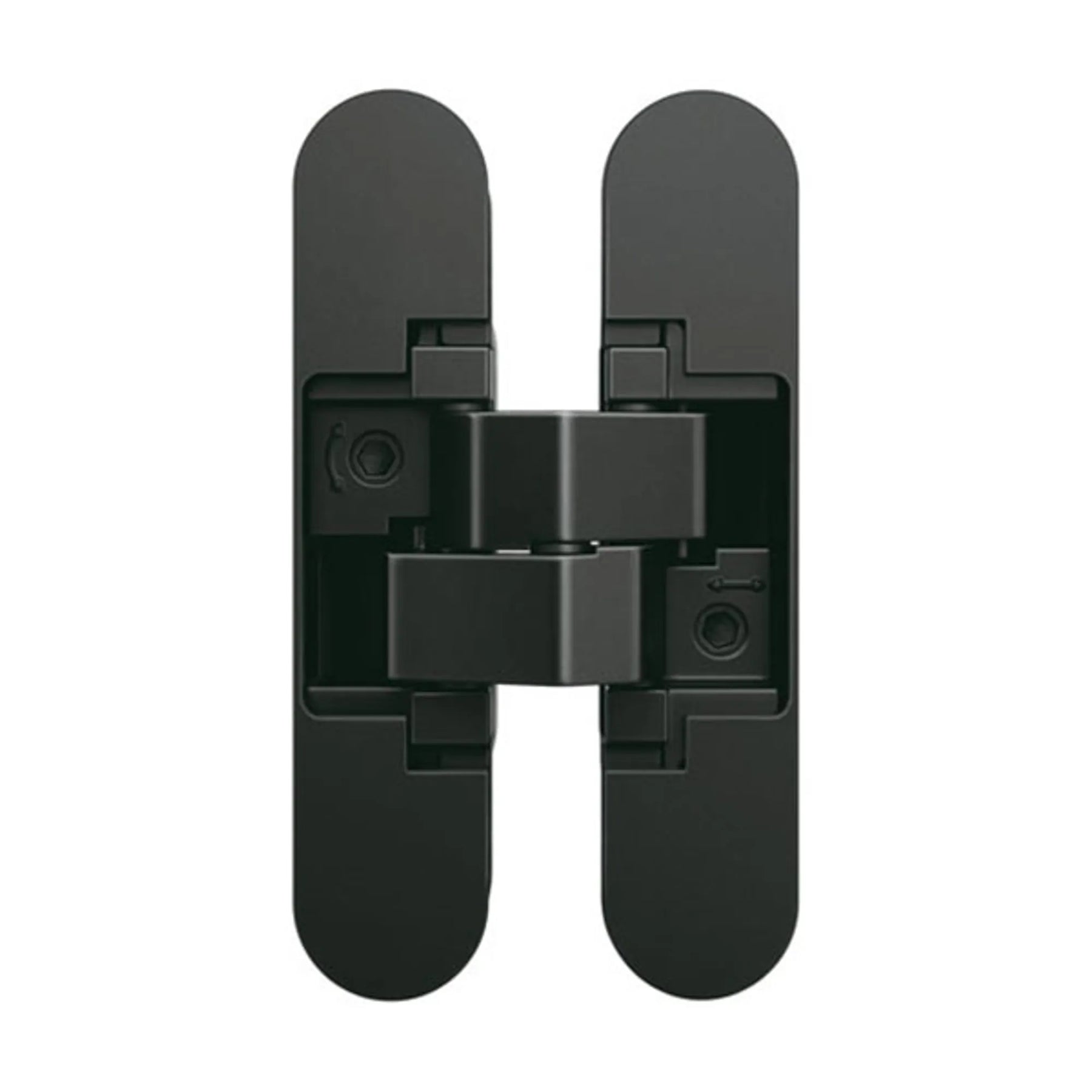 Infällt, dolt gångjärn i zamak för dörrar upp till 60 kg.