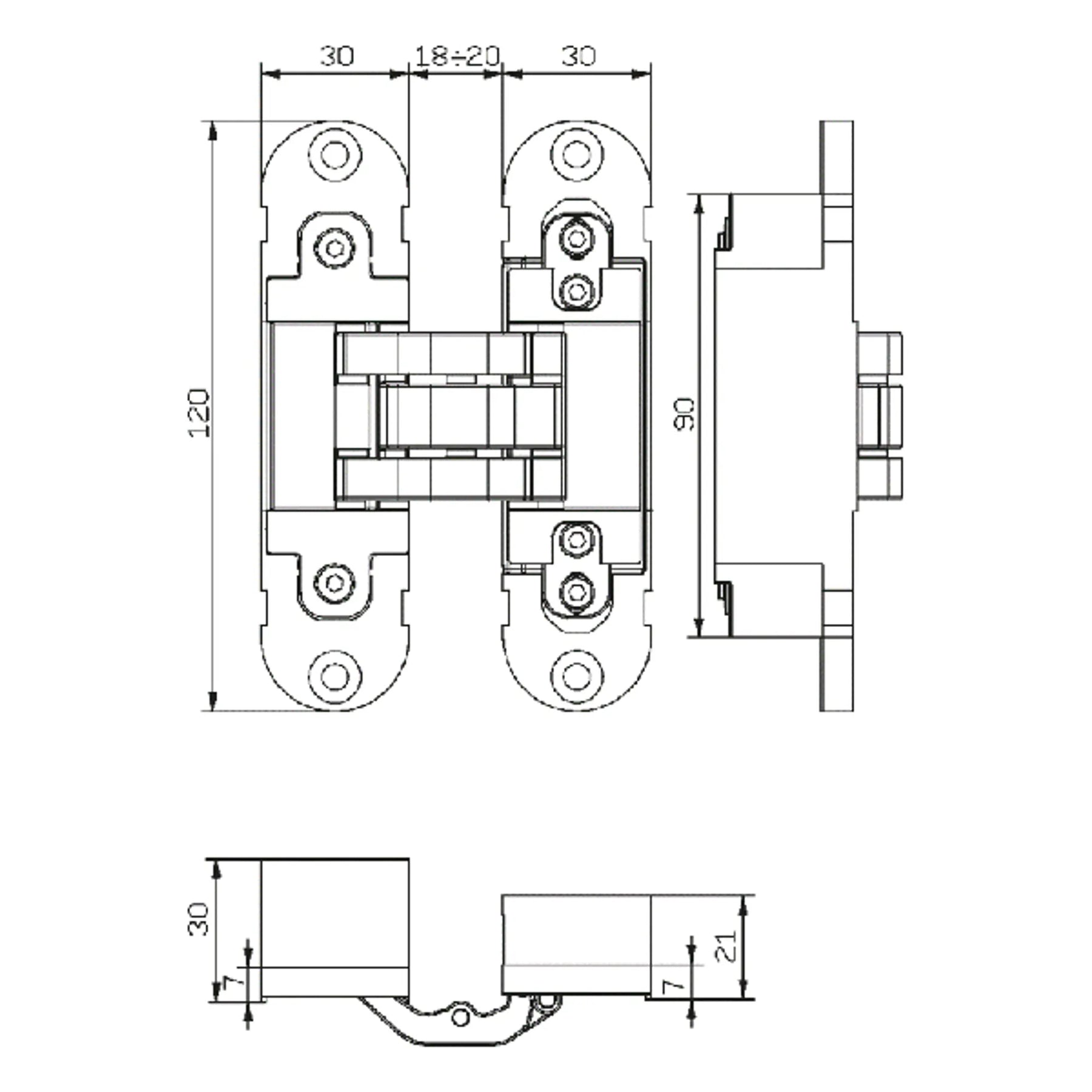 Gångjärn IN300120 silver är ett infällt, dolt gångjärn i stål/aluminium och klarar dörrvikter upp till 60 kg med två gångjärn.