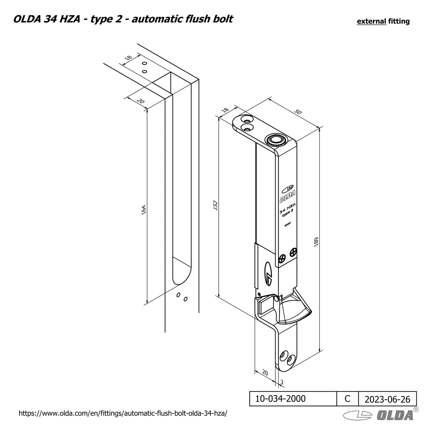 Kantregel 34 HZA typ 2 är en automatisk, enkelverkande kantregel för fjädrande regling av passivt dörrblad i pardörrar.