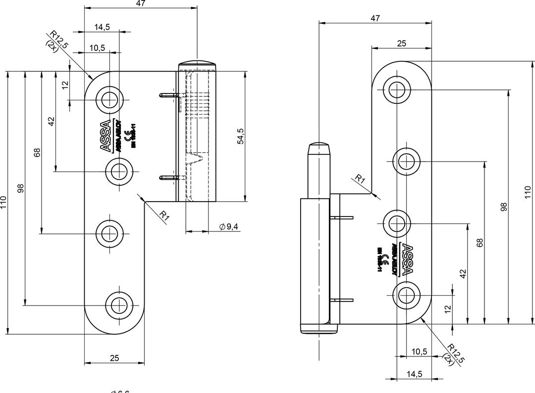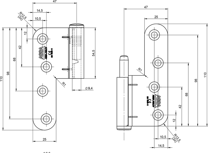 karm då gångjärnets design förskjuter dörrbladet så att det inte inkräktar på dörrens fria passagemått när dörren är öppen 90°.