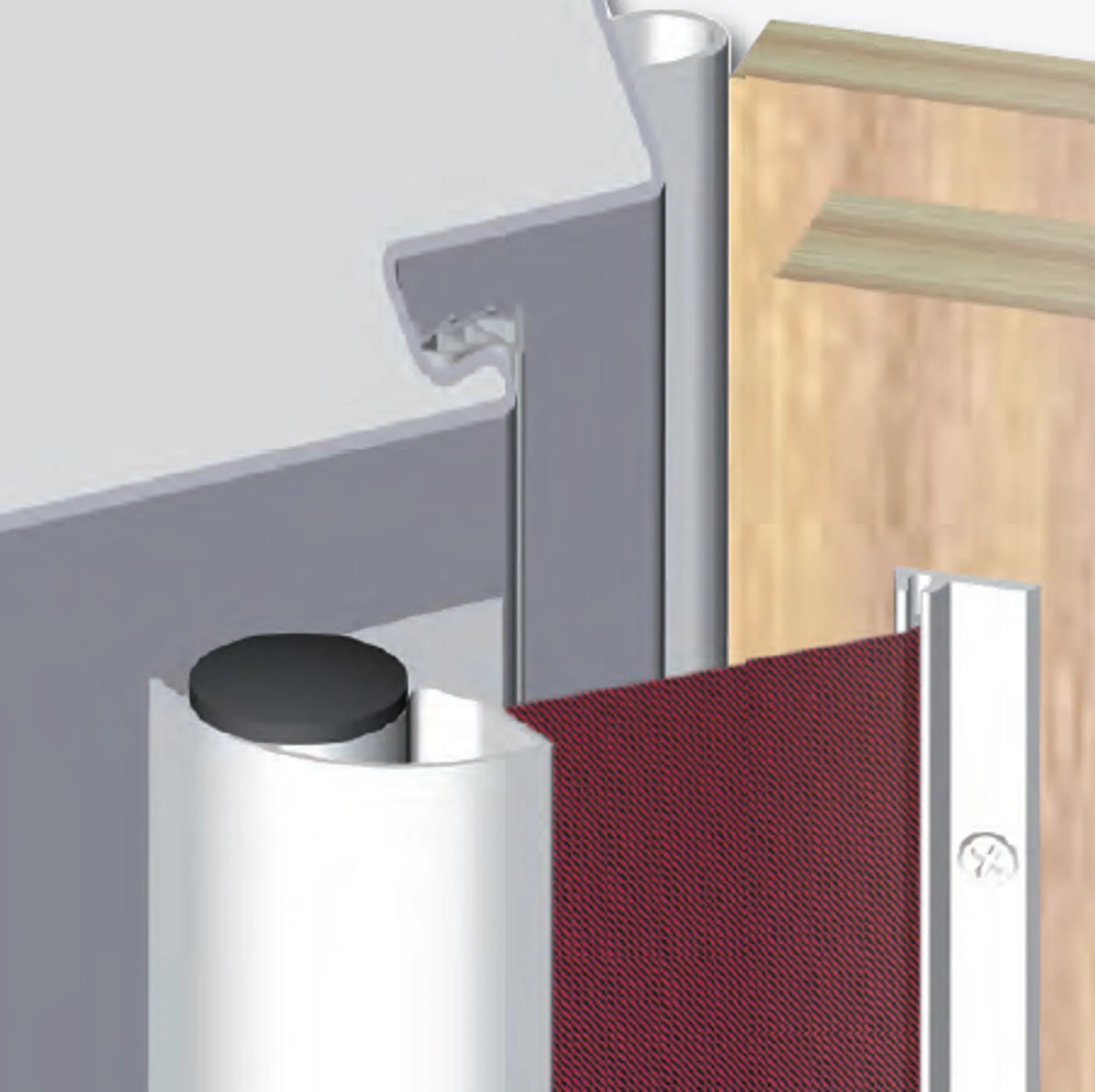 Klämskydd för slagdörrar inomhus av trä eller metall. Förhindrar risken att klämma fingrar i bakkant på slagdörrar. En kraftig duk ligger rullad under konstant fjäderspänning inne i en vertikal aluminiumprofil, som moneteras mot karmen på dörrens anslagssida.