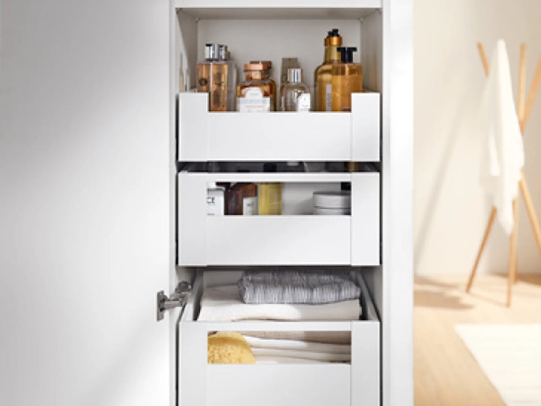 Lådsidorna, som är helt raka både på in- och utsidan och harmonierar väl in i alla typer av möbler. Alla komponenter är perfekt avstämda och bildar en mjuk övergång.