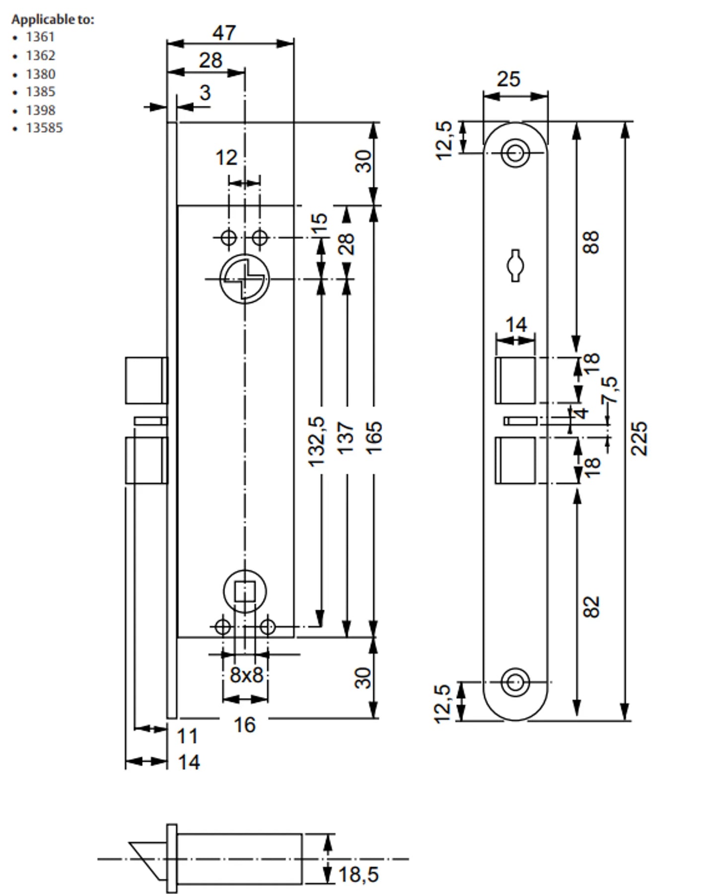 Låshus 135885 är för entrédörrar i butiker, varuhus, kontor, flerbostadshus etc. Där konstruktionen utgörs av smala ramprofiler, försedda med draghandtag och dörrstängare alt. dörrautomatik.