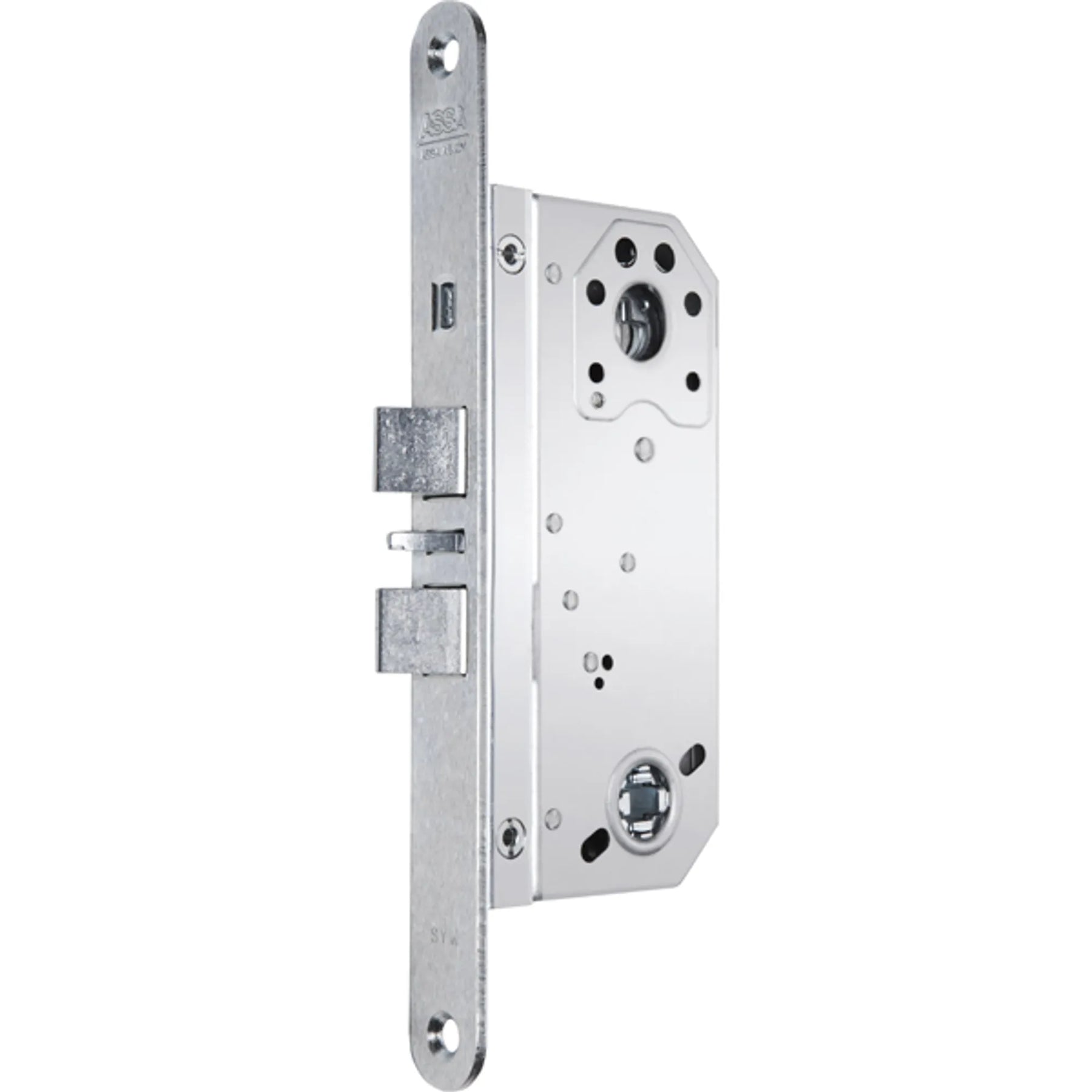 Låset kan kombineras med elslutbleck. Alla fallar dras in med nyckel eller vred, tryckesfallen dras in med dörrtrycke. Cylinderfallen kan ställas upp med uppställningsknapp.