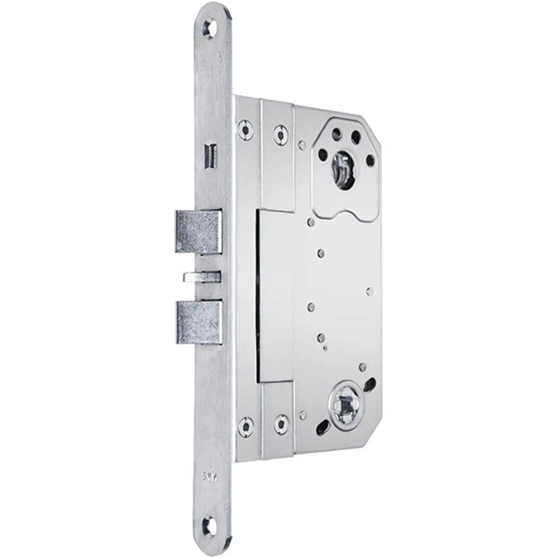 entrédörrar, tekniska utrymmen etc. Låset finns i dorndjupsutförande 50 / 70 mm och är certifierat enligt SS-EN 12209.