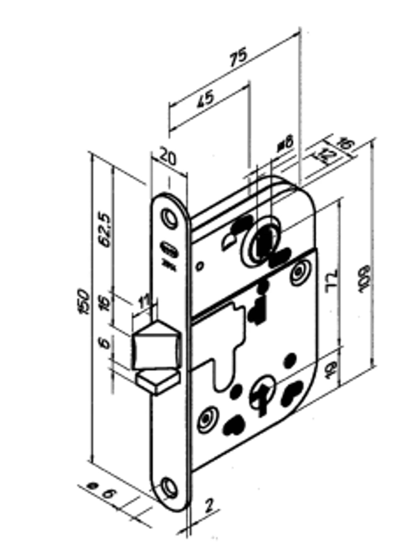 Låset har urtagsmått enligt Svensk Standard SS 81 73 82.