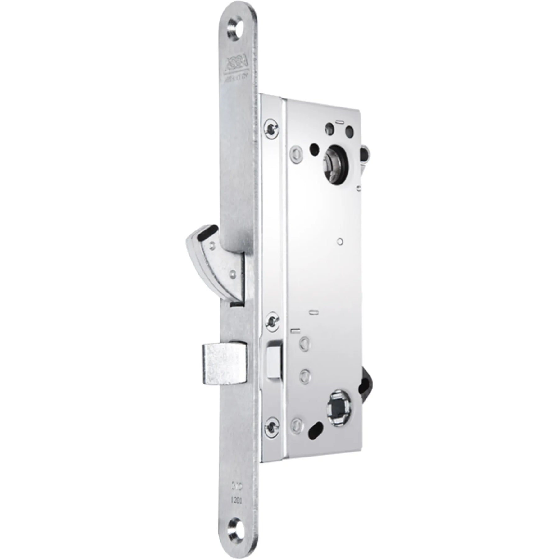 Låshus 310 är ett enkelt hakregellås med hakregel och tryckesfall som används till innerdörrar i industri, butikslokaler, toalettdörrar etc.