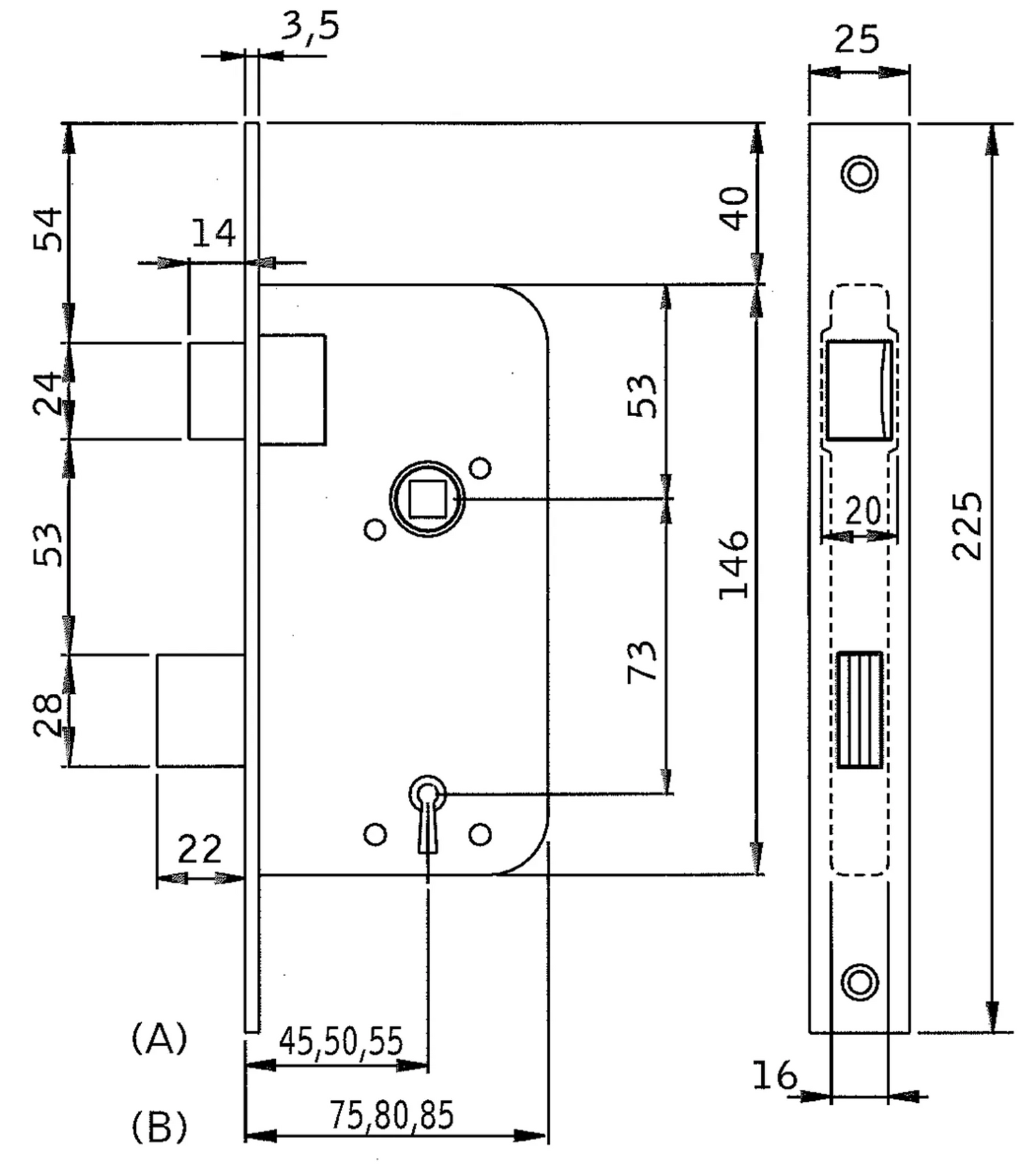 Låset finns i tre olika låsdjup (75, 80, 85 mm) och har tryckesfunktion som är placerad ovanför nyckelhålet och  har 7-tillhållare i stål. Förregling sker automatiskt vid 2 st 360°nyckelvridningar.