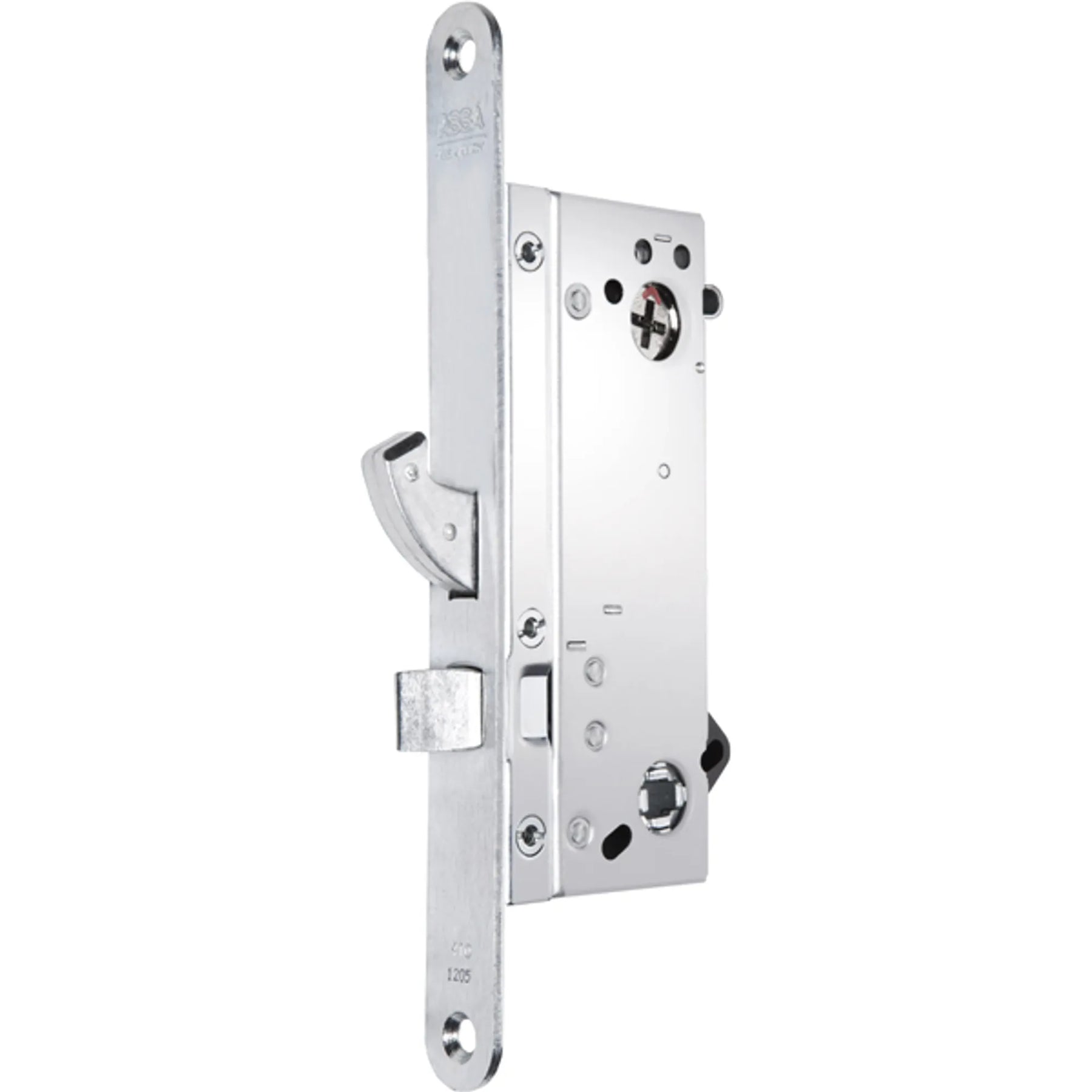 ASSA ABLOYS låshus 410-50 är ett godkänt hakregellås med tryckes-fall som används till entrédörrar, arkiv, förråd, kontorslokaler, indus-trier etc. Låset finns även i dorndjupsutförande 35 / 70 mm.