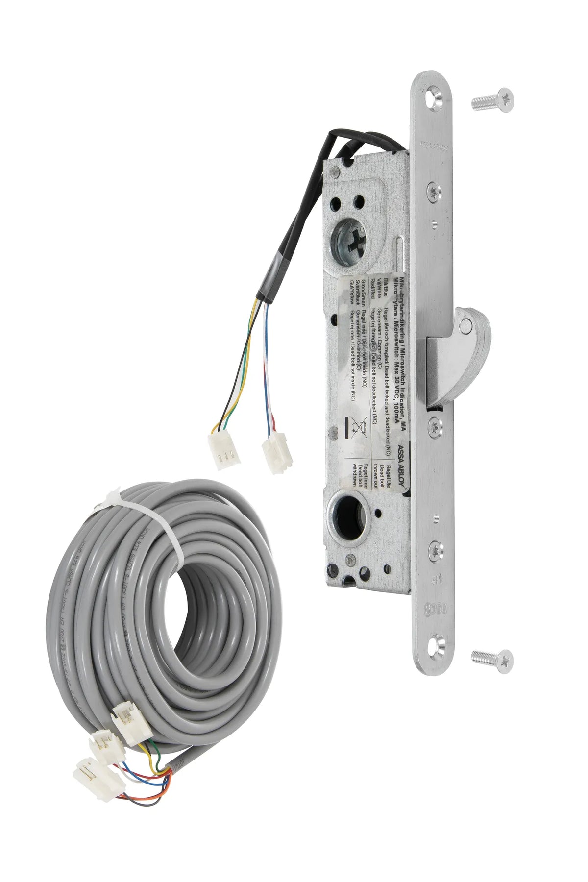 Låset kan kombineras med elslutbleck för hakregellås och levereras med inbyggd låssköld.