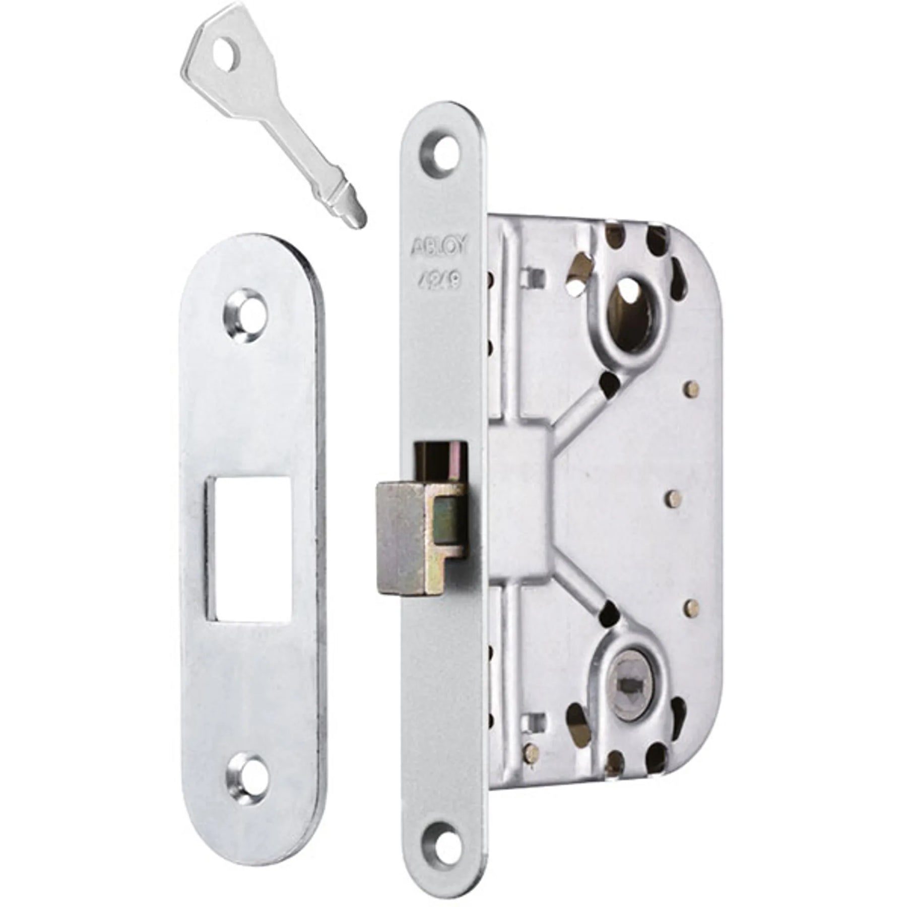 Låset har urtagsmått enligt Svensk Standard SS 81 73 82. Låset levereras med nyckel och slutbleck 4662 i 40-pack.