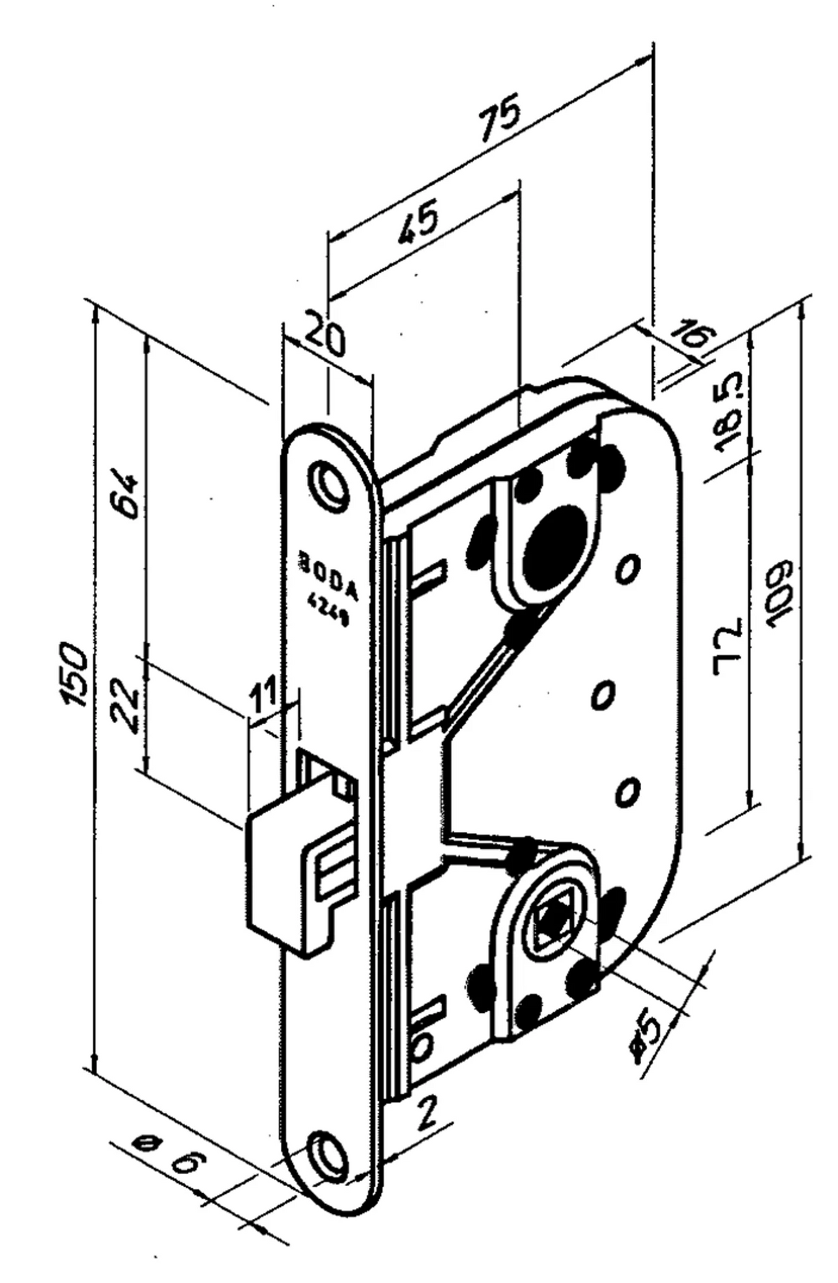 Låshus 4249 är ett hakregellås som används till olika typer av lätta skjutdörrar såsom dragspelsdörrar, vikdörrar, badrums- och toalettdörrar både i privatbostäder och kontorslokaler. Låset har dorndjup 45 mm och reglas med nyckel eller WC-behör LH0341.