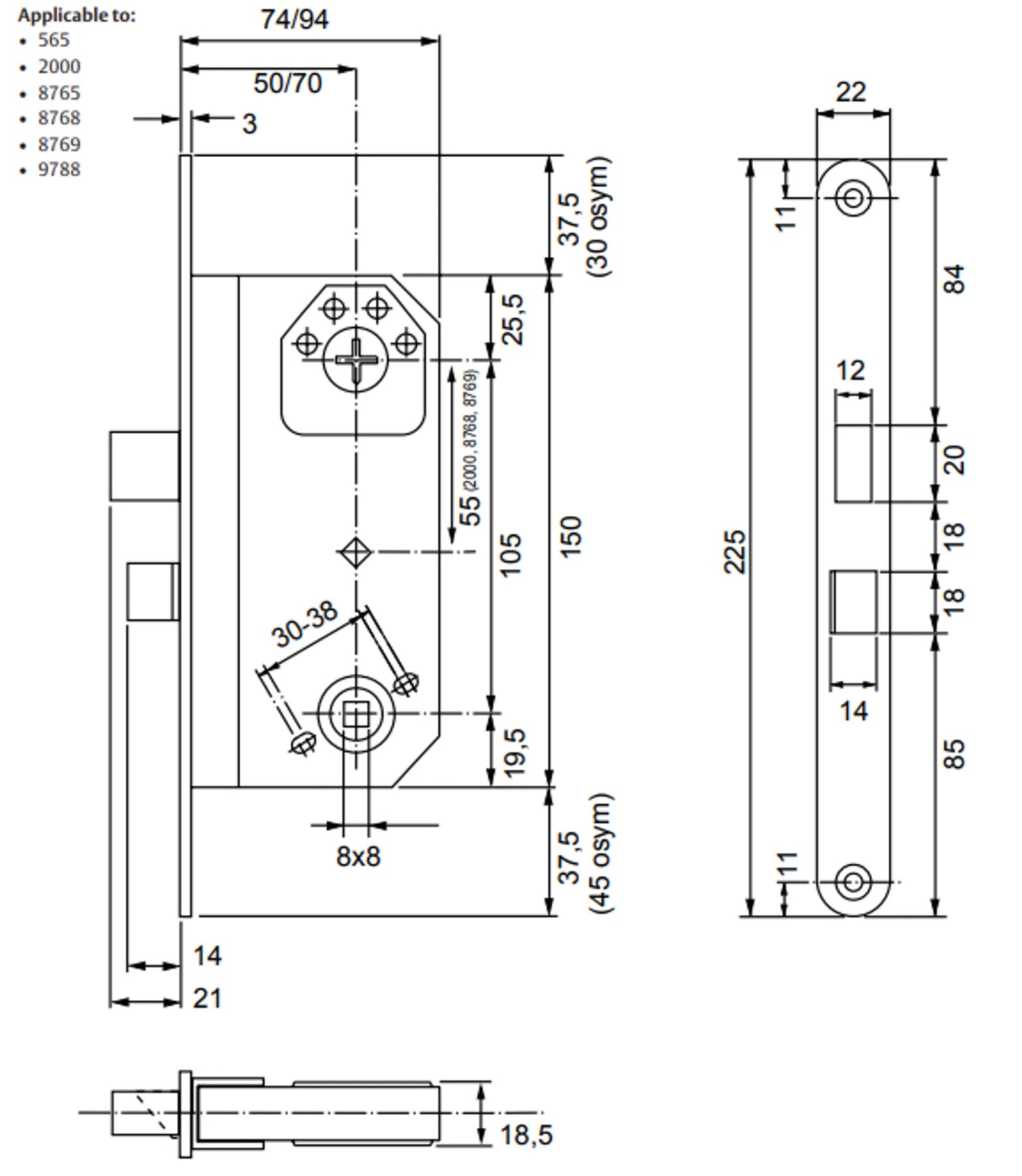 Låshus 565 är ett enkelt regellås med rak regel och tryckesfall. Låset används till innerdörrar, kontorslokaler, industrier,