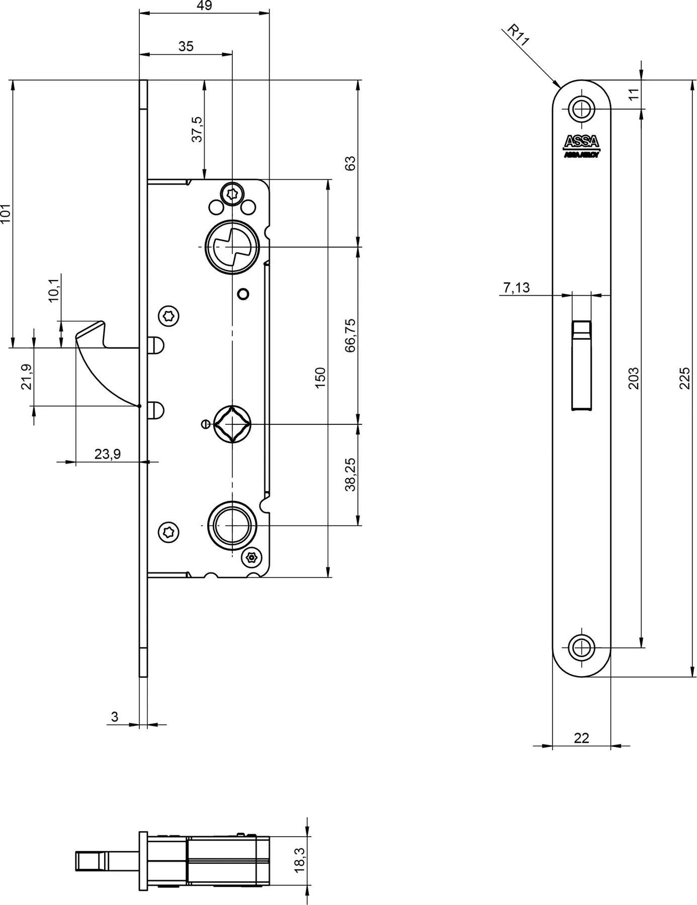 Låshus 711-35 för nödutrymningsbeslag 179B är ett hakregellås avsett för slagdörrar i utrymningsvägar där särskilda krav på panikutrymning ej föreligger. Låset öppnas med ett handgrepp, vilket innebär en säker utrymning.