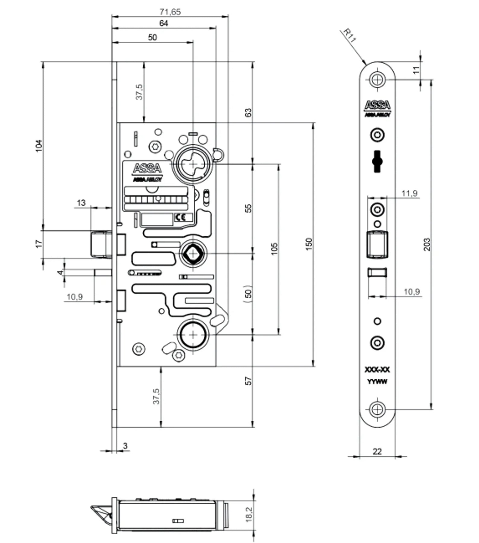 - Låshus 731-50 kan användas med elslutbleck ur ASSAs 900-serie.