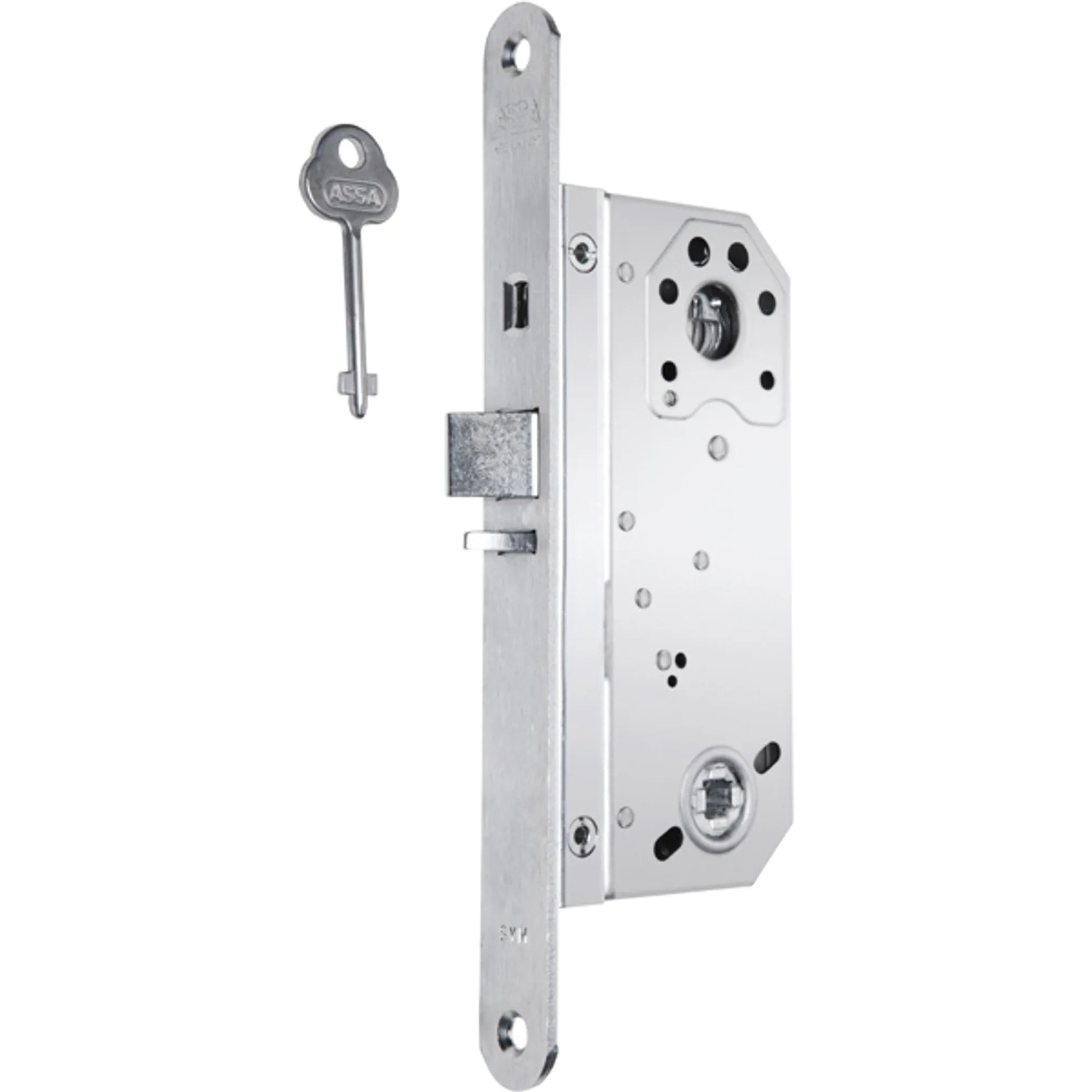 Låshus 8562-50 är ett cylinderfallås med cylinder- och förreglingsfall. Låset används till nödutgångar, ställverk, transformatoranläggningar etc.