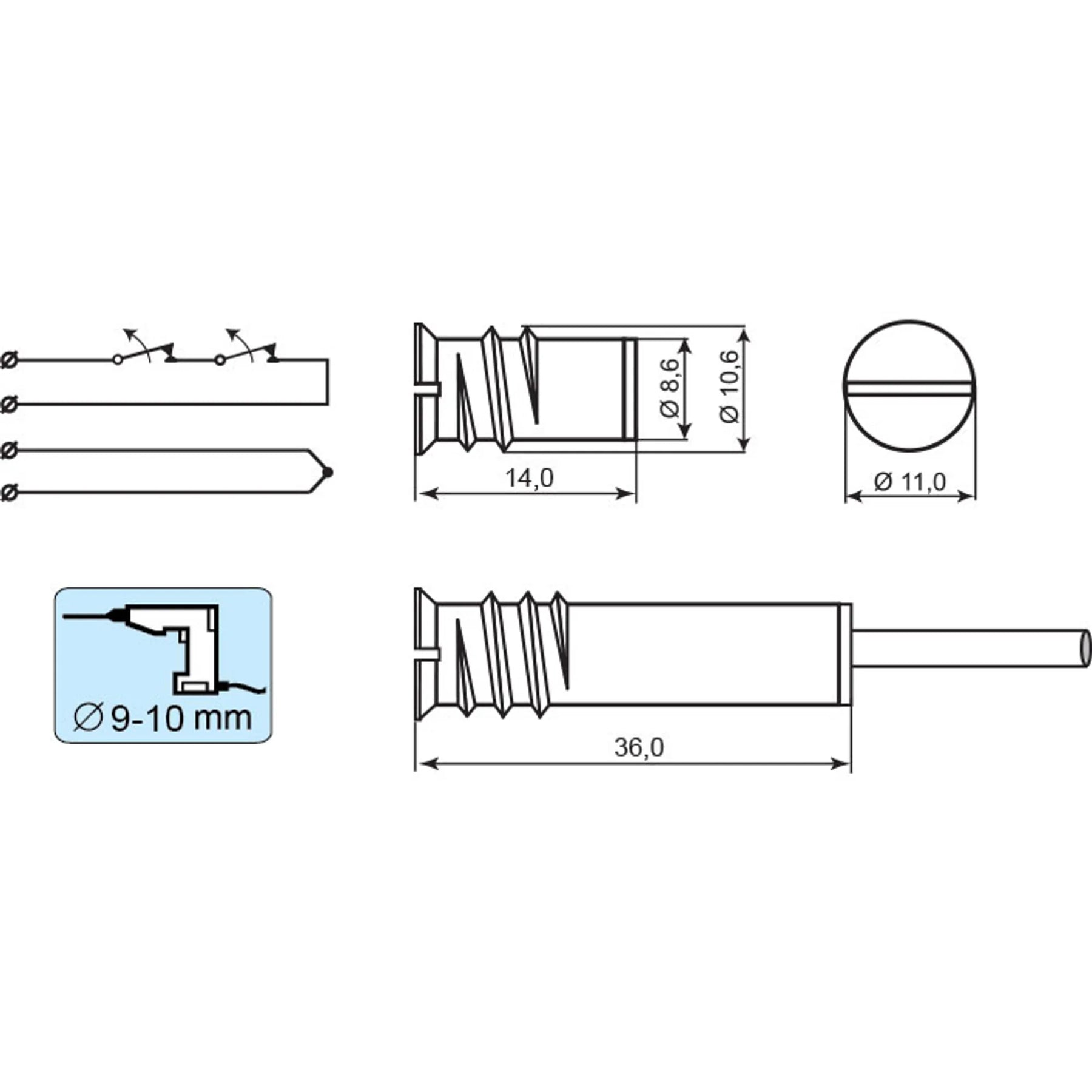 Magnetkontakt MC 270 för infällt montage ingjuten i aluminiumkapsling. Den har en självlåsande gänga för enklare montering och möjlighet till dolt montage.
