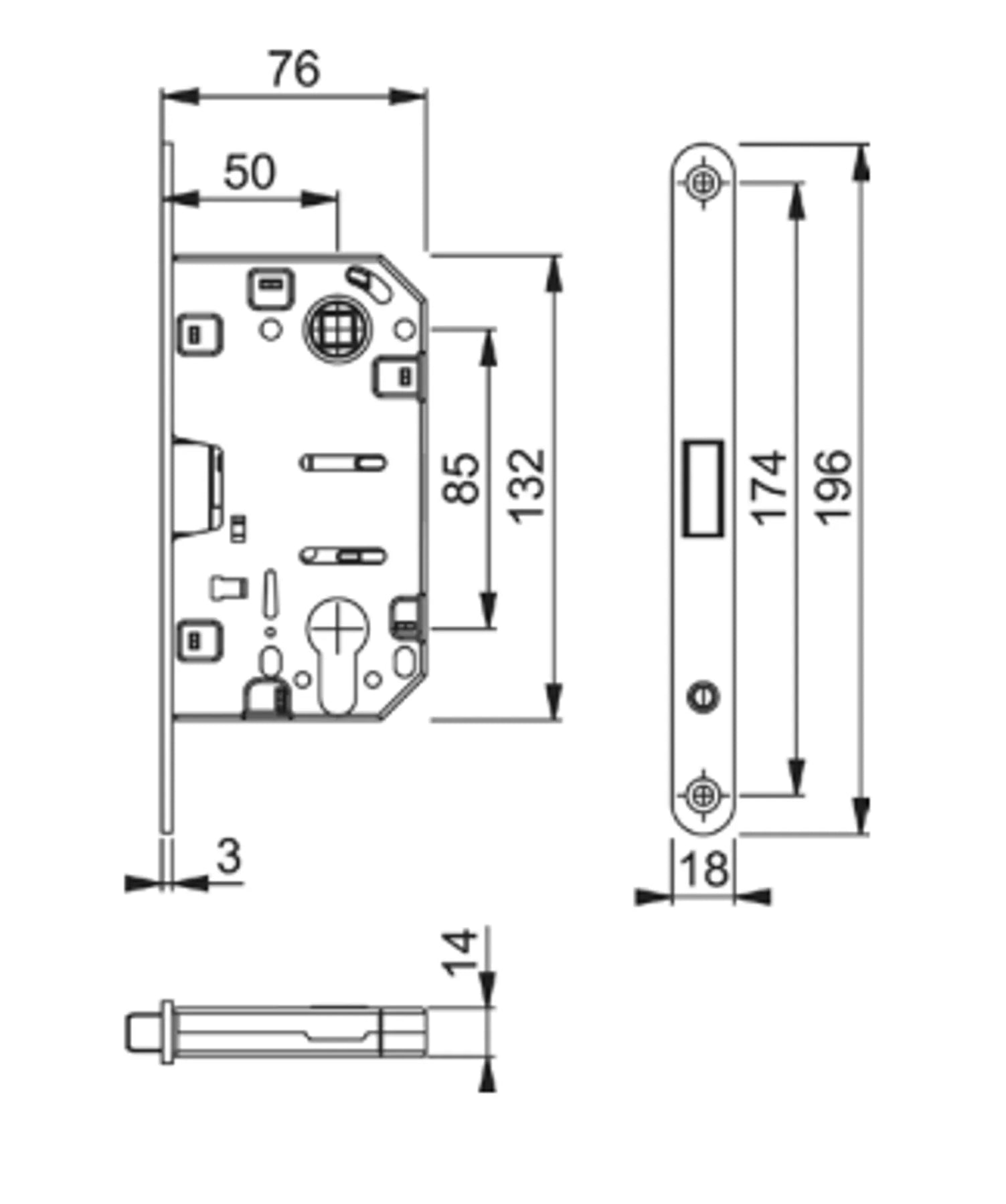 Måttskiss magnetlås AR3310