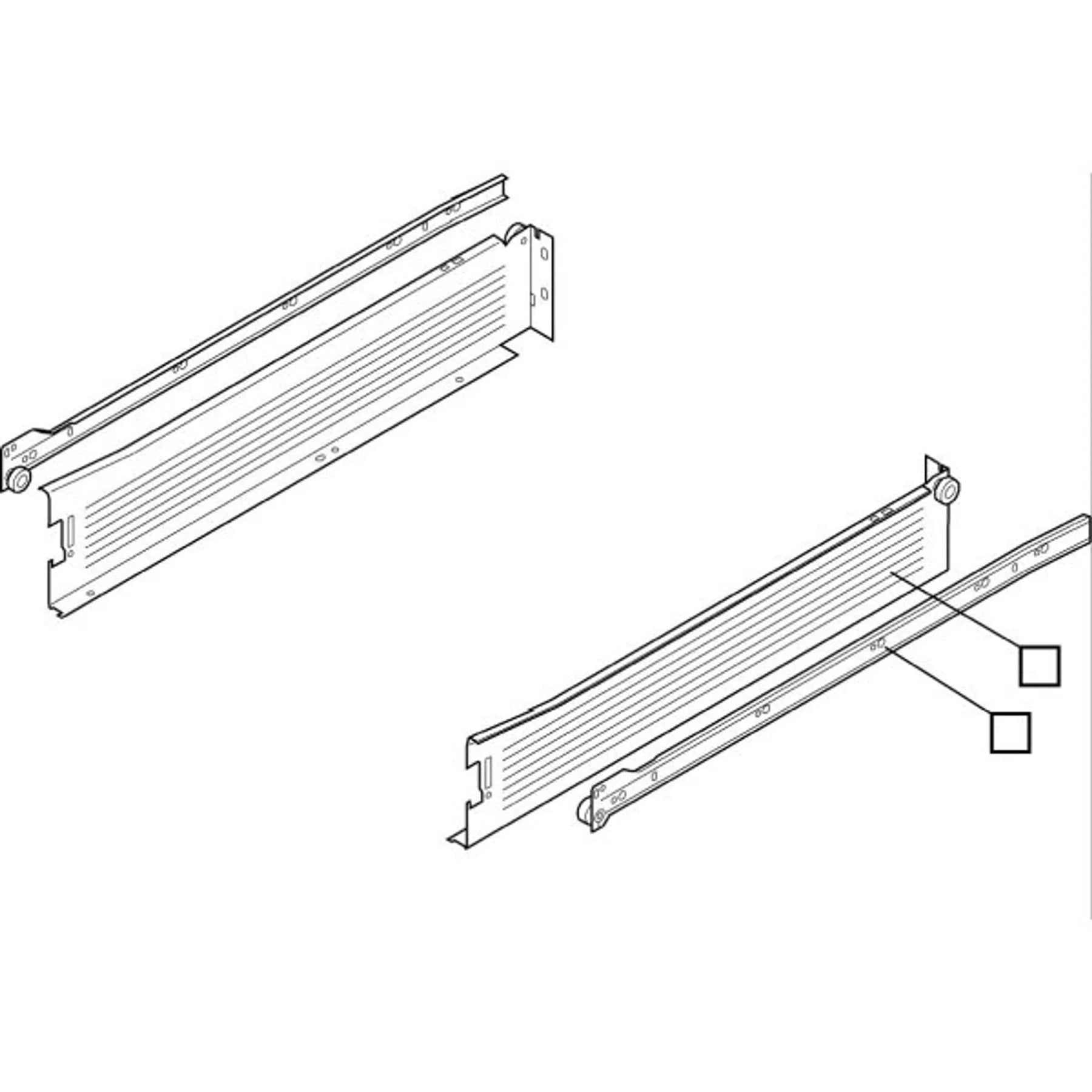 längd: 450 mm. 1 set: Stomprofiler (hö+vä) och lådsidor (hö+vä).