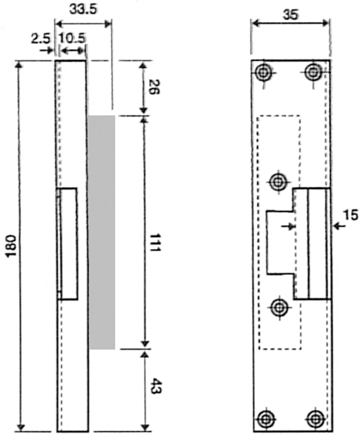 Förzinkad. 180 x 35 x 15 x 10,5 mm.