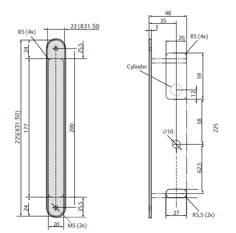 - 831C-50 utan tryckesfall kan användas i dörrar med dörrautomatik