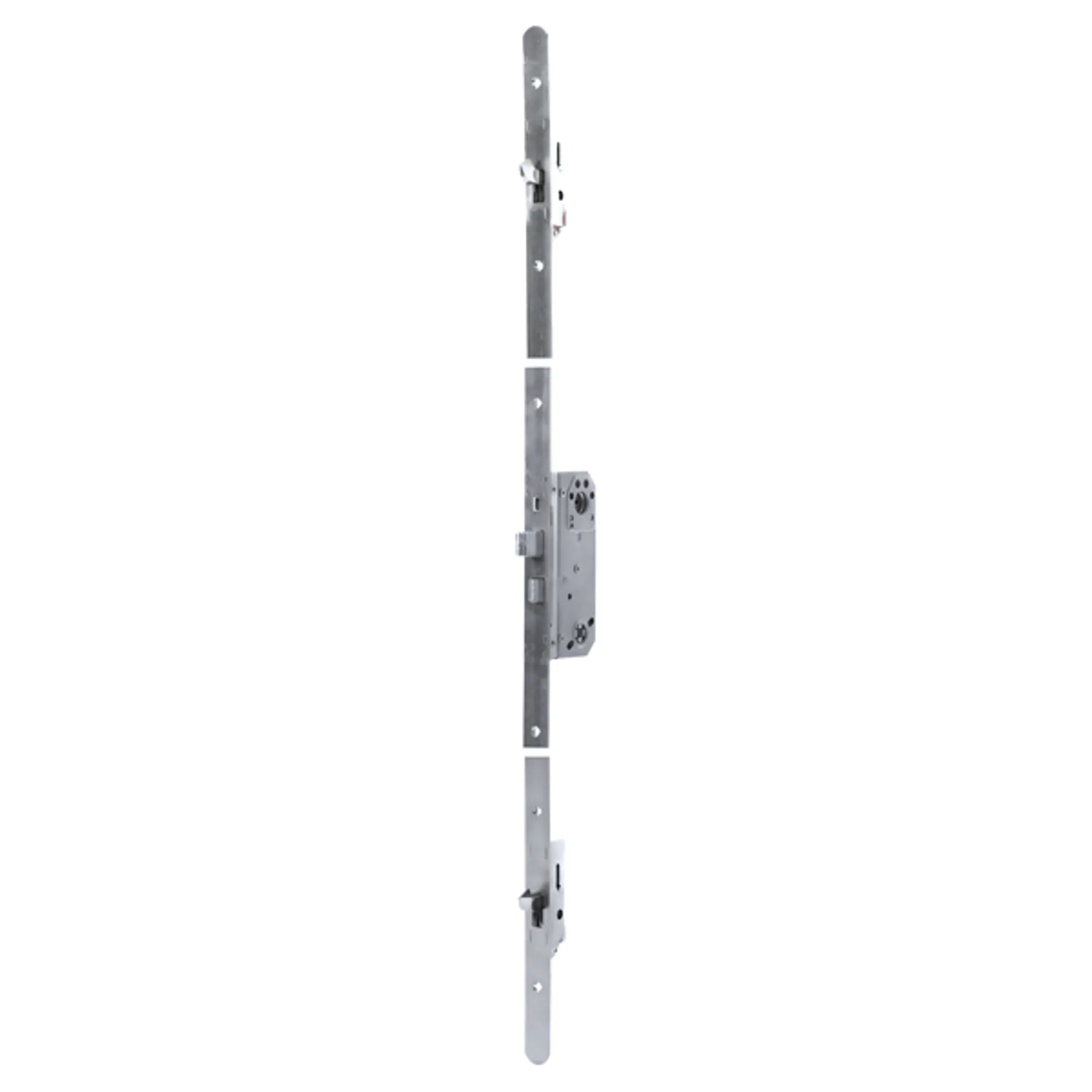 Flerpunktslås för ytterdörr. Flerpunktslås med 360 graders nyckelvridning och centrumlås 8765 med rak regelkolv och tryckesfall.