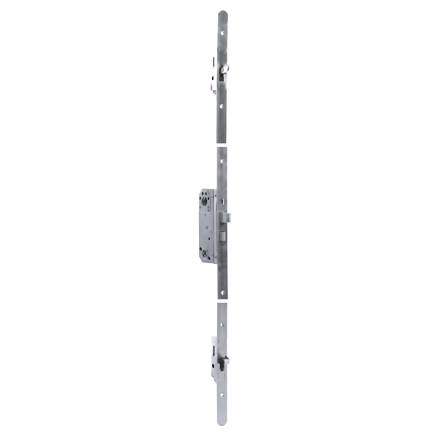 Flerpunktslås för ytterdörr. Flerpunktslås med 360 graders nyckelvridning och centrumlås 8765 med rak regelkolv och tryckesfall.