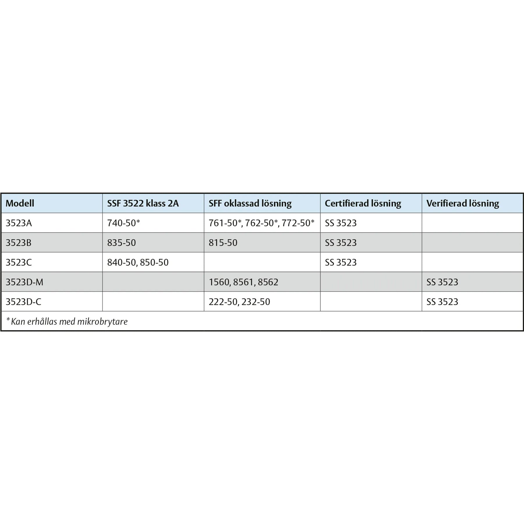 • Nödöppnare 3523C passar tillsammans med Velox el-tryckeslås: 840-50, 850-50.